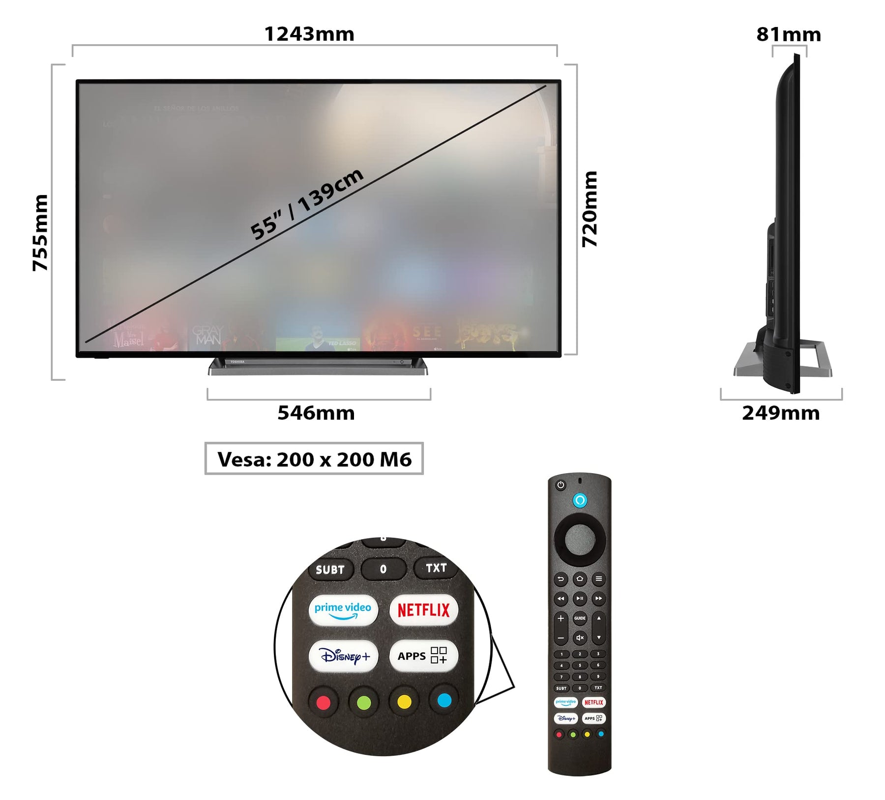 Toshiba 55UF3D63DA 55 Zoll Fernseher/Fire TV (4K Ultra HD, HDR Dolby Vision, Smart TV, Triple-Tuner, Alexa Built-In, Bluetooth, Sound by Onkyo)