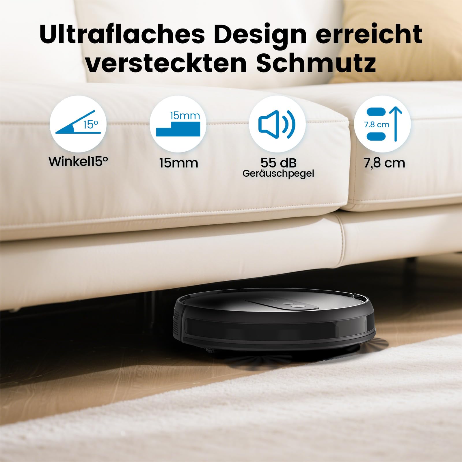 - 【Intelligente App-Steuerung】Sie können jederzeit über die App Reinigungszeitpläne festlegen und zwischen verschiedenen Reinigungsmodi wechseln. Zudem lässt sich der Saugroboter ohne Wischfunktion per Sprachbefehl über Alexa und Google Home starten oder stoppen. Hinweis: Die App unterstützt ausschließlich 2,4-GHz-Netzwerke.