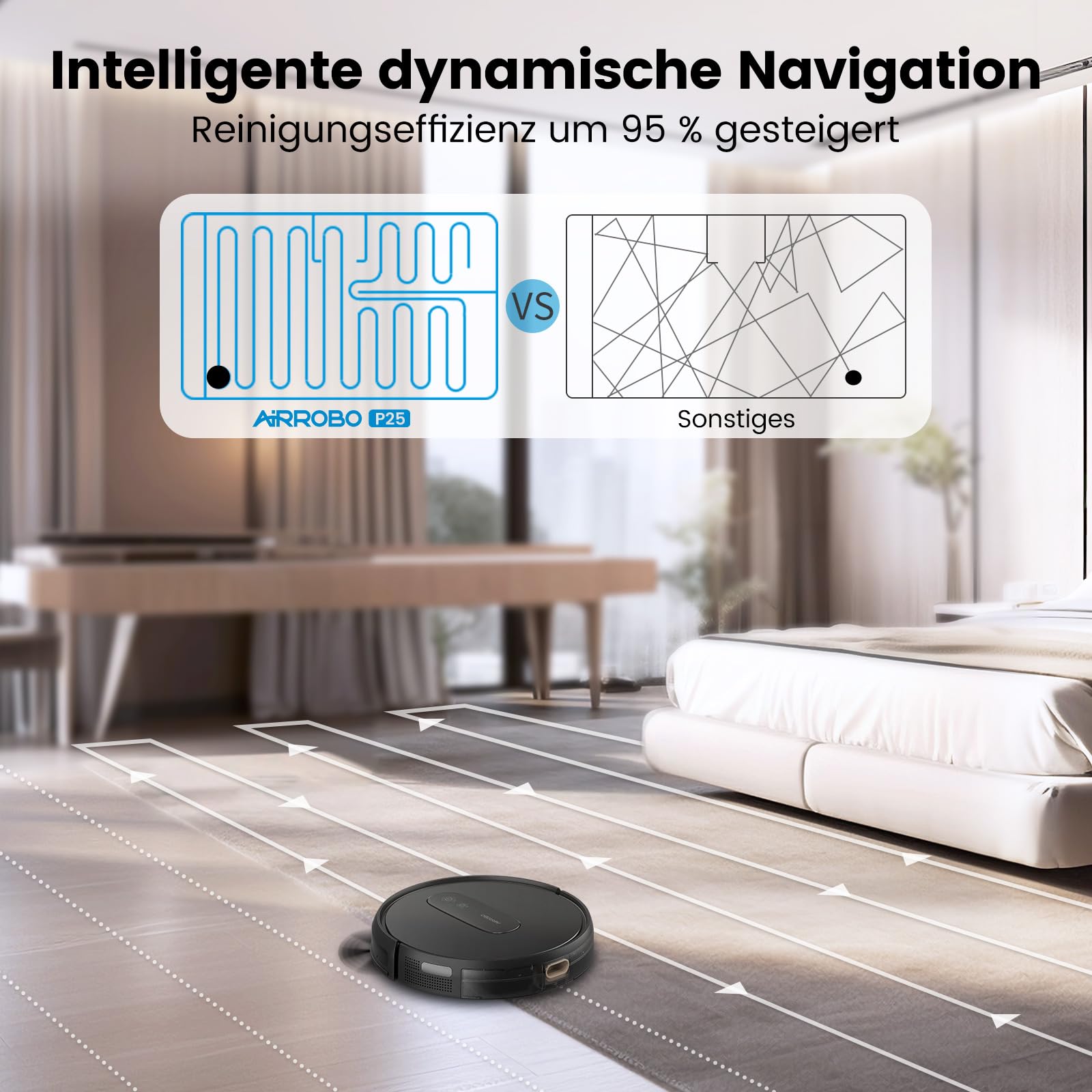 - 【Leises Staubsaugen& Kleines Körperdesign】Der AIRROBO P25 Staubsaugerroboter mit verbesserter Geräuschreduzierung arbeitet mit nur 55 dB – leise genug, um weder Familie noch Haustiere zu stören. Mit einer Bauhöhe von nur 7,8 cm gelangt er mühelos unter Betten, Sofas und andere Möbel für eine gründliche Reinigung.