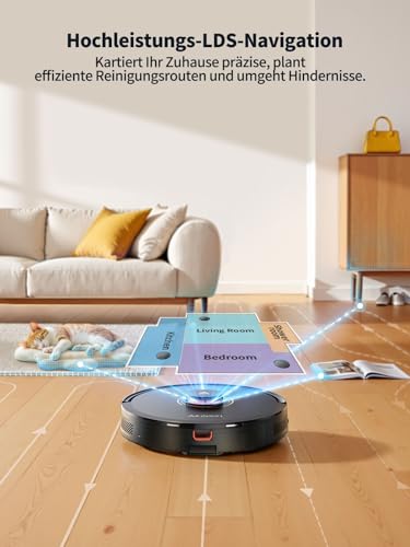 • App und Sprachsteuerung: Steuern Sie Ihren staubsauger mit wischfunktion über die HomeAloT App, um Reinigungszeiten festzulegen, Reinigungsmodi auszuwählen, einzelne Räume zu reinigen, Sperrzonen einzurichten sowie den Reinigungsfortschritt in Echtzeit zu überwachen; zusätzlich unterstützt die Sprachsteuerung Alexa und Google Assistant. Hinweis: Für die App-Verbindung ist 2,4-GHz-WLAN erforderlich