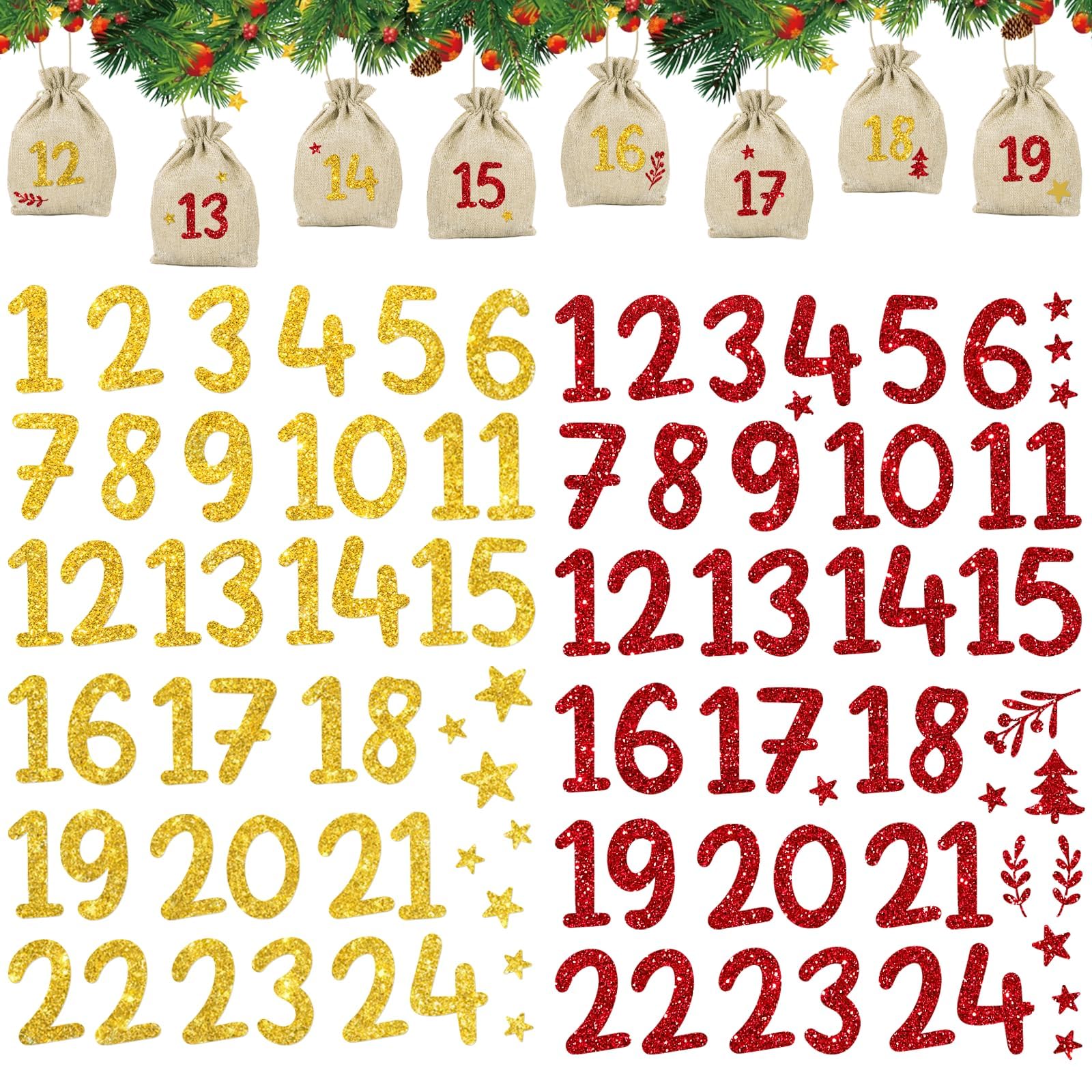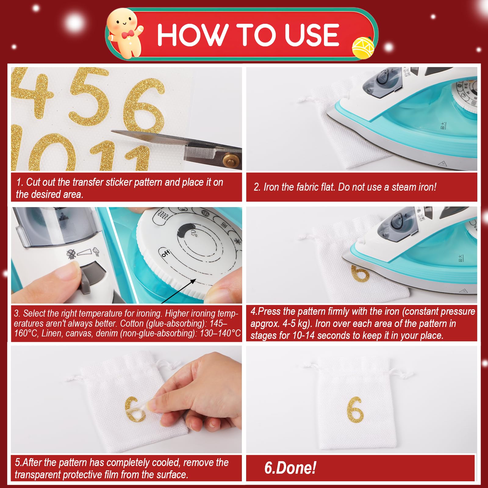 Einzelheiten: BOOMTOP Bügelbilder Adventskalender Zahlen 1-24 Selbst Gestalten Adventszahlen Aufkleber Bügelfolie für Stoffbeutel Textilen Transfer Aufkleber