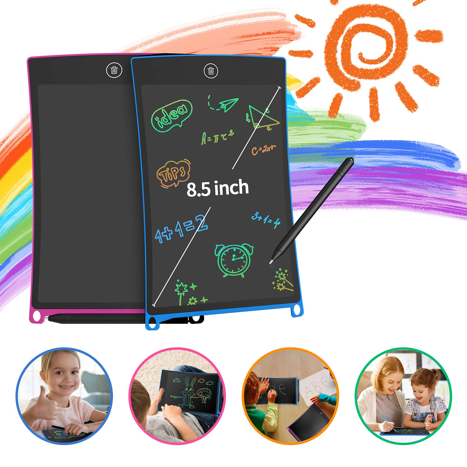 - 💝【2 Packungen zum Teilen】 Die LCD Schreibtafel im 2er-Pack löst das Problem, dass Kinder um Spielzeug kämpfen, und für Erwachsene können Sie Ihre Kreativität oder Idee mit Freunden teilen, indem Sie auf der LCD Schreibtafel schreiben oder zeichnen.