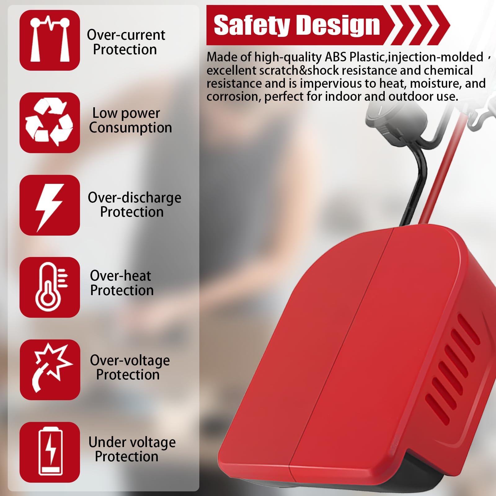 - [Hochwertiges Material] Der Akkuadapter besteht aus umweltfreundlichem ABS-Material mit Korrosions, Feuchtigkeits und Stoßschutzfunktion und ist für den Innen und Außenbereich geeignet. Kabelloses Netzteil zur Selbstmontage mit zwei schwarzen und roten Silikonkabeln (14 AWG)