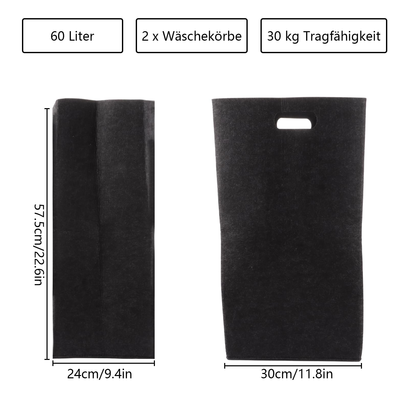 - Großes Fassungsvermögen --- Sie erhalten 2 x 24x30x57,5cm dunkelgraue Wäschekörbe mit einem Fassungsvermögen von 60L, die bis zu 30kg Wäsche aufnehmen können, um den täglichen Bedarf Ihrer Familie zu decken