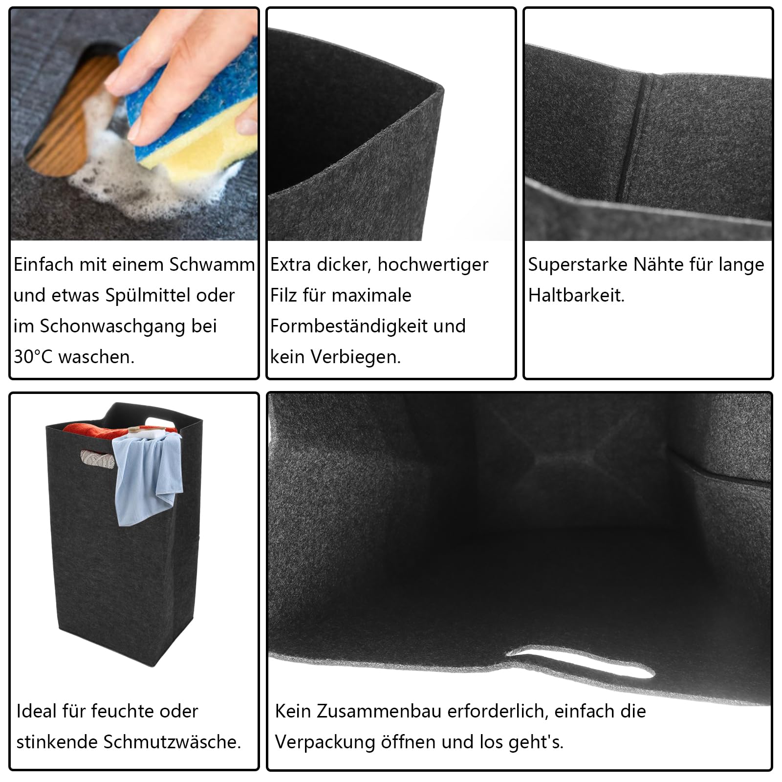 - Atmungsaktiv und langlebig --- Der faltbare Wäschekorb ist aus hochwertigem Filzmaterial hergestellt, leicht, langlebig, stark und atmungsaktiv, wasserdicht, reinigungsfähig und kann wiederholt für eine lange Zeit verwendet werden