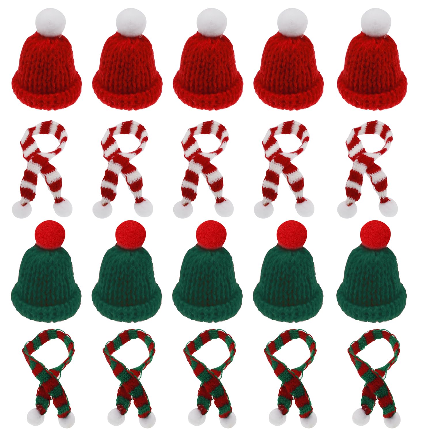 • 【Mini Weihnachtsmütze und Schal Set】Enthält 10 Mini-Weihnachtsmützen, 10 kleine Schals, perfekt als Weihnachtsdekoration, um Ihr Weihnachten fröhlich zu machen.