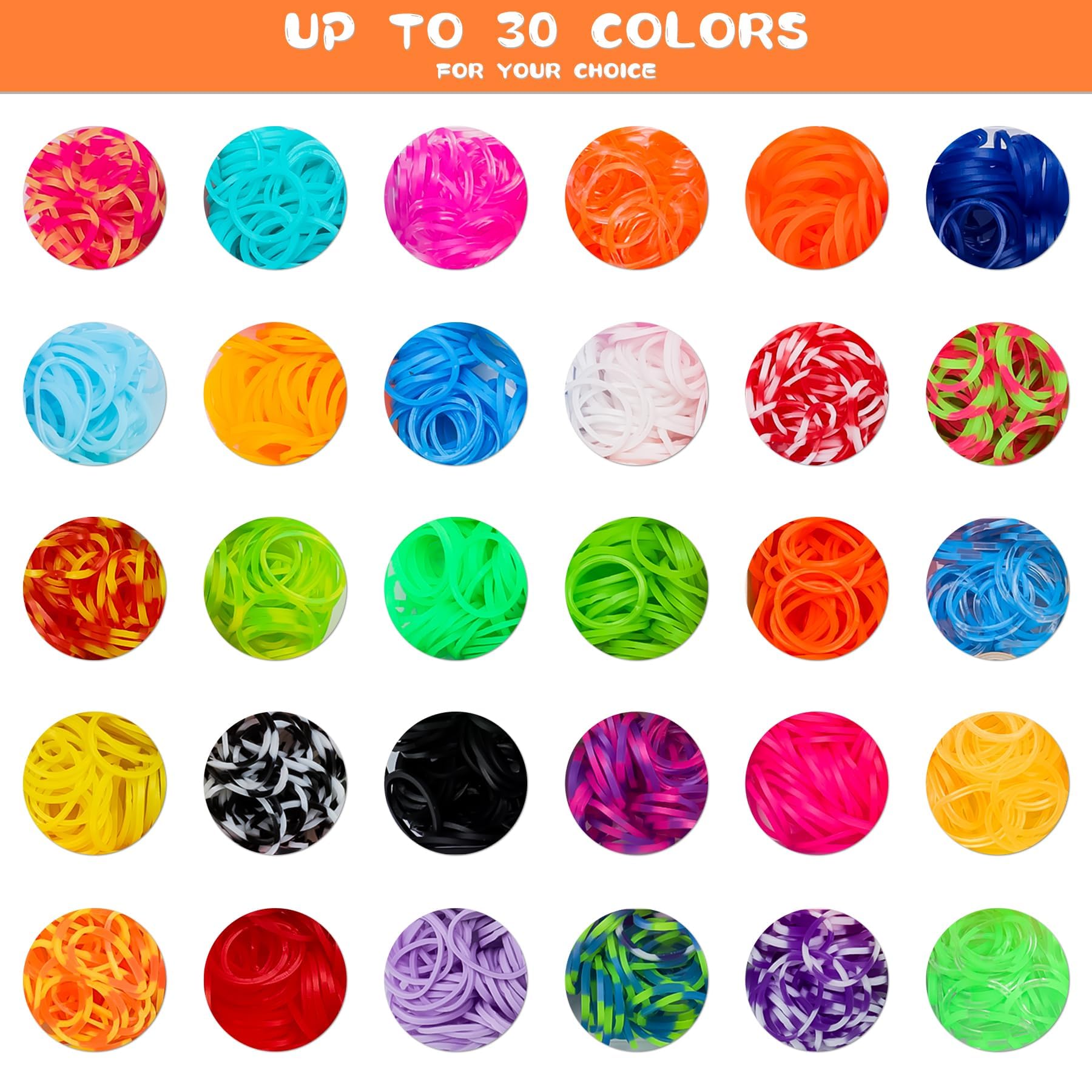 • 2500+ Loom Bänder Set: 2200+ hochwertige Webstuhl-Gummibänder in 30 schönen Farben, 12 Charms, 80 Perlens, 12 Obstanhänger, 2 Häkelnadeln, 3 Strickwerkzeuge, 2 Haken, 100 S Clips