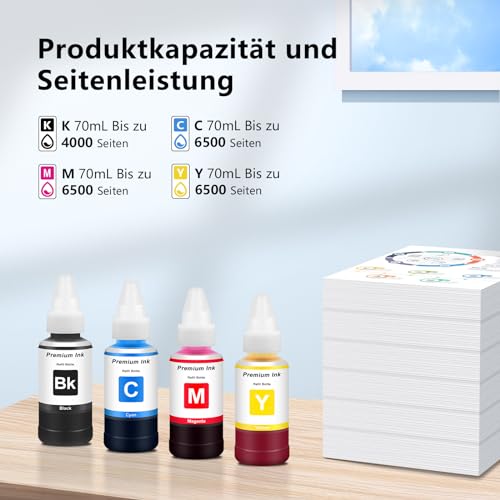 - Kompatibel ET 2600 Nachfülltinte Premium Qualität: Kompatibel ET-2600 Tinte gewährleistet Premium Qualität durch Ultrafiltration, ohne zu verstopfen, schnell trocknende und schwach saure oder alkalische Formel, Zufriedenheit beim Hochgeschwindigkeitsdrucken. Kompatibel ET 2550 Tinte glatt und gleichmäßig, kein Verstopfen, kein Ausbleichen, keine Tintenbelichtung, die Volltonfarbe liefert, ist in einer 70mL Flasche erhältlich und kann problemlos mehrmals nachgefüllt werden