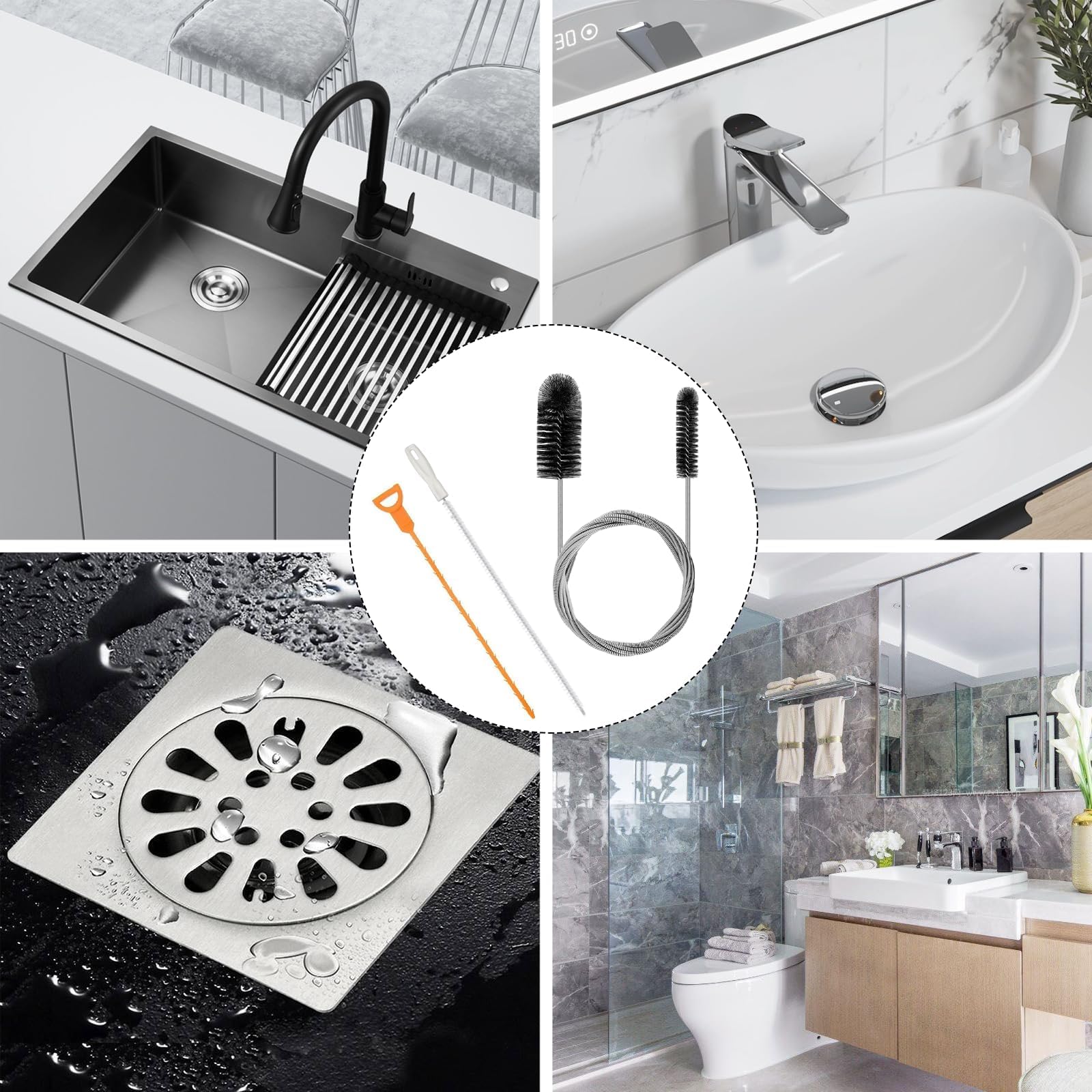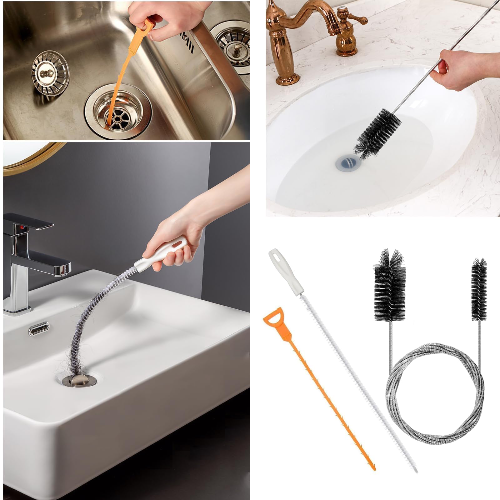 - Vielseitige Anwendung: Die 80 Zoll lange Rohrreinigerbürste ist ideal zum Reinigen von Kühlschränken, Aquarienfiltern, Fischtanks,Waschmaschinen,Kaffeemaschinen, Autoschiebedachabflüssen und anderen schwer erreichbaren schmalen Rohren/Schläuchen. Und das 24 Zoll Abflussreinigerwerkzeug und der 20 Zoll Haarentferner sind für Küchen, Badezimmer, Duschwannenabflüsse und Bodenabläufe geeignet und können alle Arten von Rohrverstopfungsproblemen lösen.