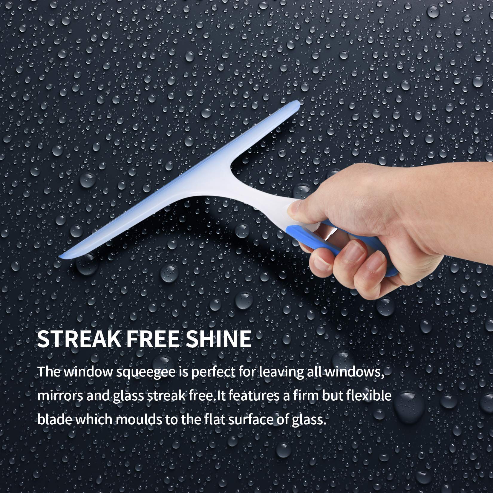 • 【Ergonomischer Griff】 Ergonomischer Griff unserer Glasabzieher Dusche mit Fingerdrucknut, bequem und flexibel zu bedienen, schnell und arbeitssparend. Das Design ist bequem und leicht zu greifen und wird bei der Verwendung nicht rutschig oder unangenehm. Der rutschfeste Griff, der die Ermüdung der Hände minimiert und verhindert, dass die Rakel zu oft verrutscht, erleichtert das Manövrieren.
