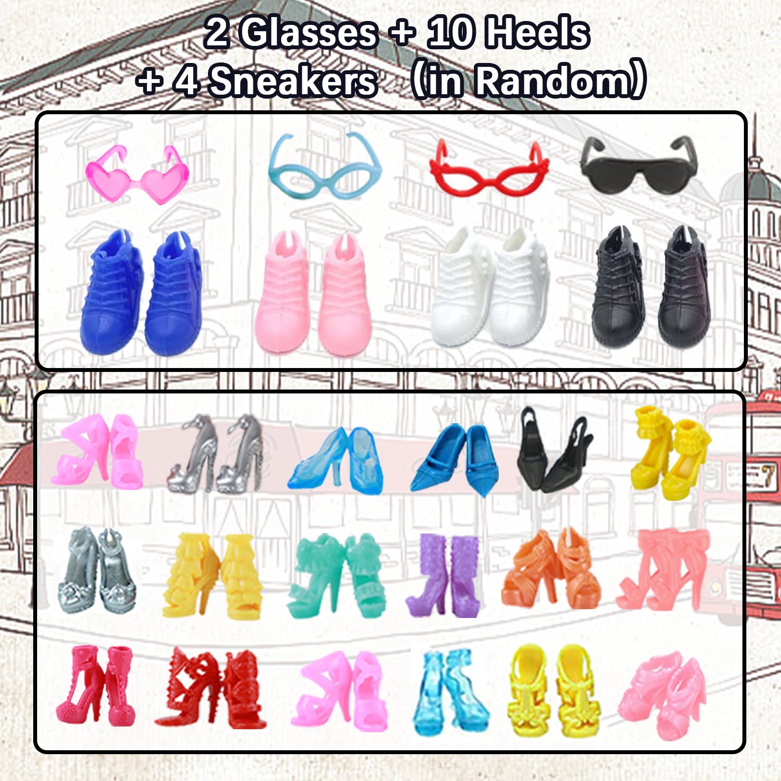 - 【30 Pieces Doll Clothes Set】Paket enthält fast alle Stoffpuppe Kleidung Zubehör, 30 Pieces Doll Clothes Set = 1 Kilobird Mantel + 2 Wintermäntel + 4 Tops + 1 Pullover + 2 Röcke + 3 Hosen + 1 Hut + 2 Brillen + 4 Paar Sneakers + 10 Paar High Heels. Alle Bedürfnisse der Puppen zum Wechseln der Kleidung können erfüllt werden.Jeder Anzug ist zufällig abgestimmt.
