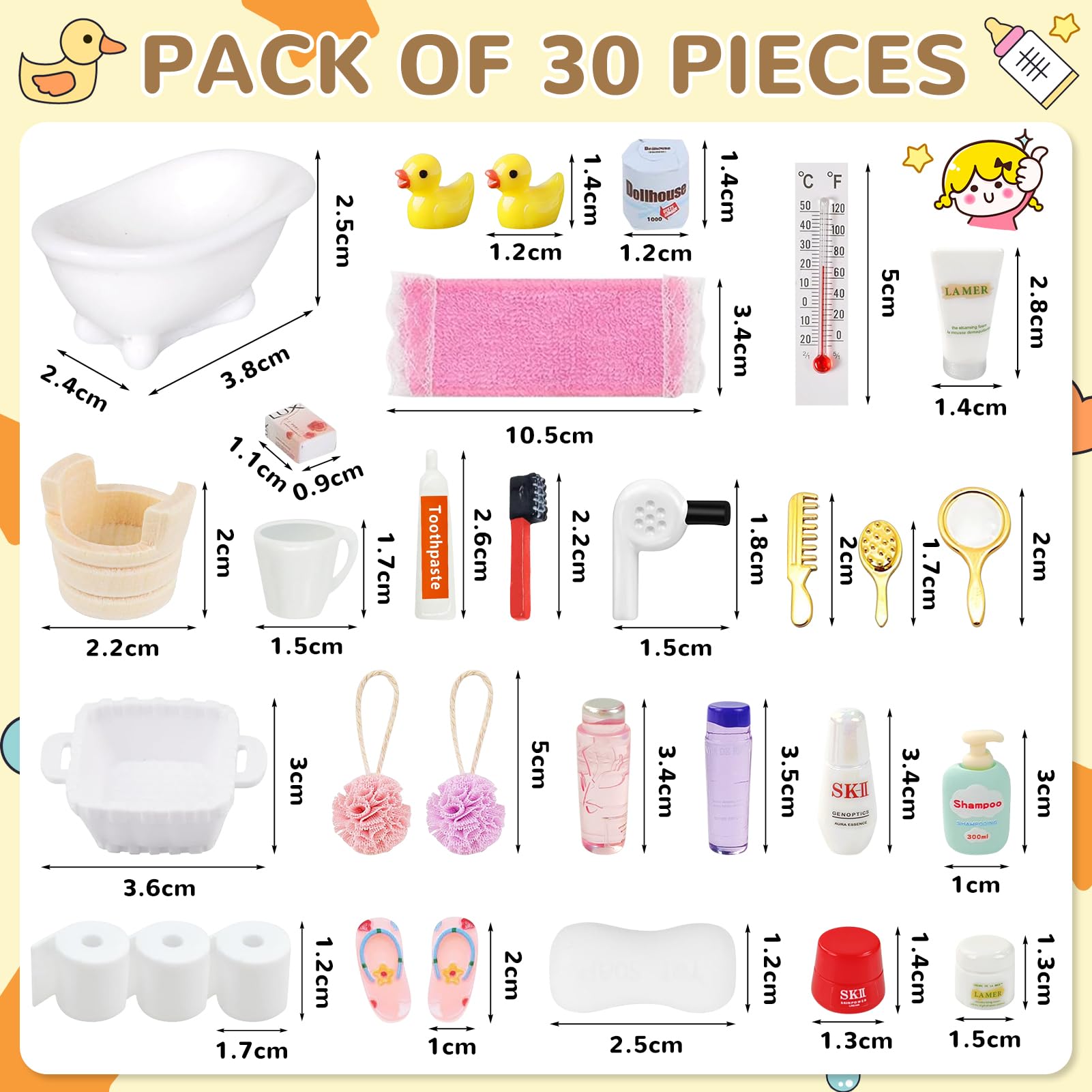 30 Stück Wichtel Zubehör Weihnachten – Miniatur Bade Set mit Badewanne, Enten & Zahnbürste – Wichtelzubehör für Wichteltür & Puppenhaus Deko