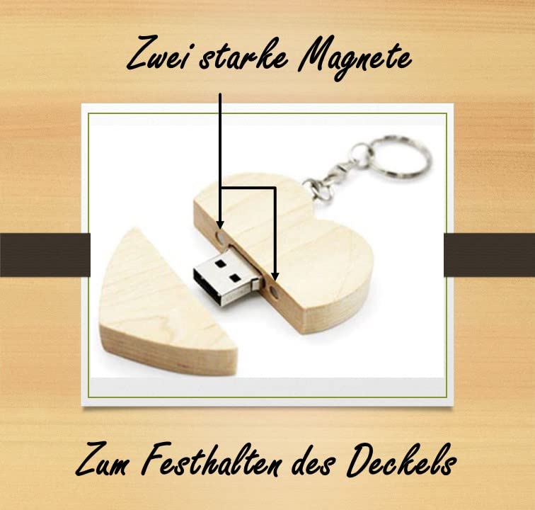Einzelheiten: USB-Stick 32 GB 3.0 in Herz-Form aus massivem Holz