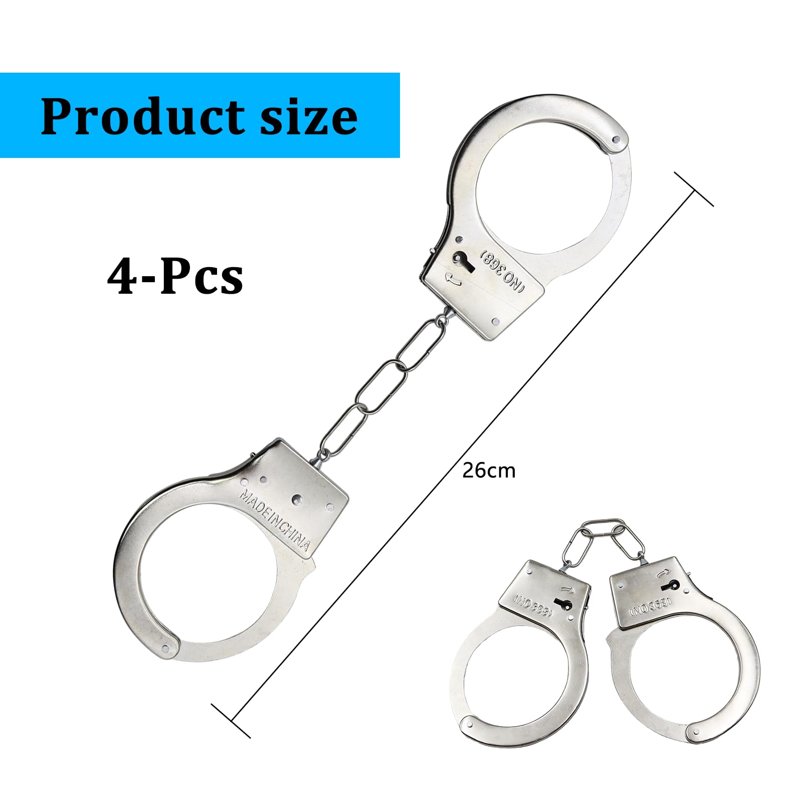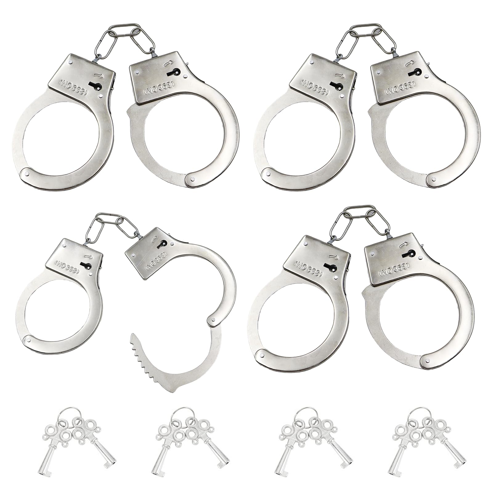 4 Stücke Spielzeug Handschellen mit 4 Schlüssel Handcuffs Kinder Handschellen aus Metall für Polizei Spielen Mottoparty Requisiten Spiel für Kinder (Silber)
