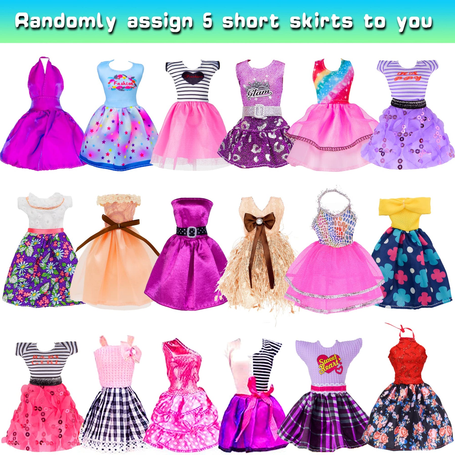 49-teiliges Puppenkleidungs- und Zubehörset für 11,5-Zoll-Mädchenpuppen enthält 3 Lange Kleider, 4 Oberteile, 4 Hosen, 3 Bikinis, 5 Kurze Kleider, 10 Schuhe, 10 Handtaschen, 10 Kleiderbügel