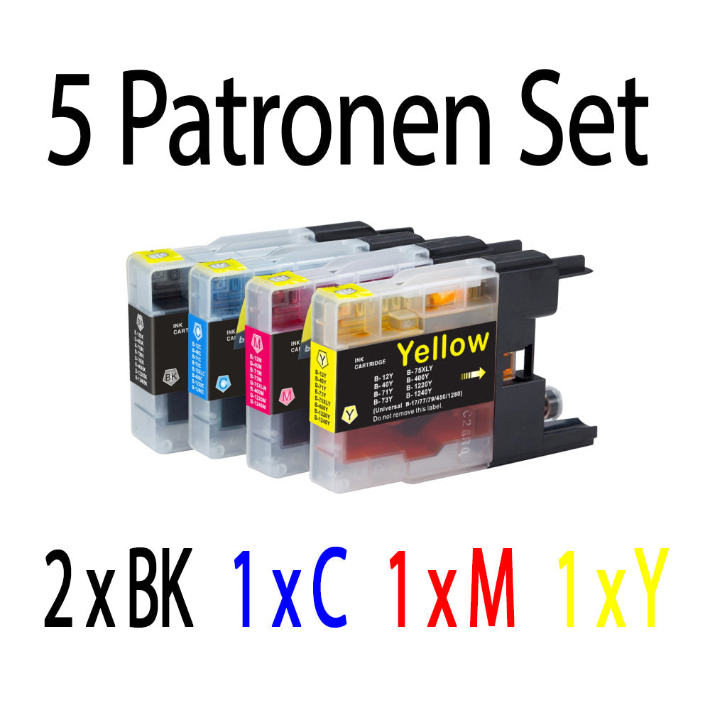 5er Set KuPri XXL Druckerpatronen für Brother MFC-J430 Serie 2x BK je 1x C,M,Y kompatibel zu LC-1240