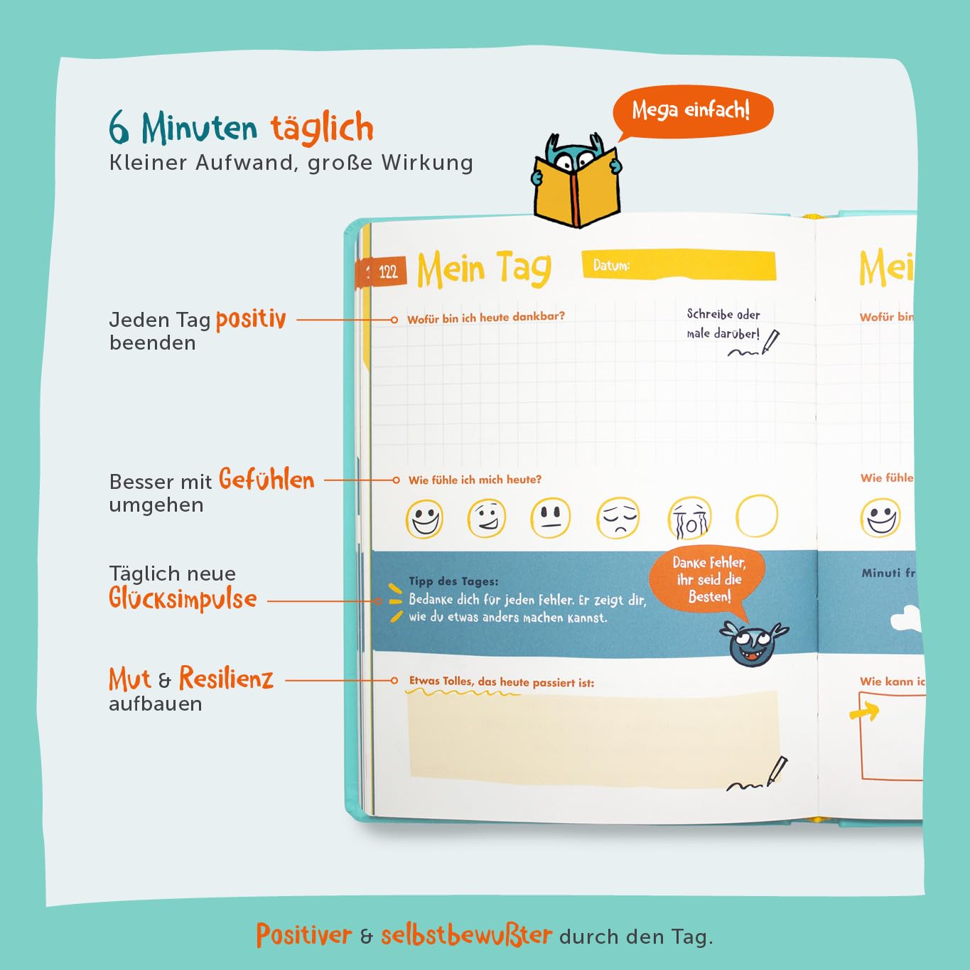 6-Minuten Gefühlstagebuch Kinder 6-12 Jahre - Tagebuch Mädchen & Jungs - Tagebuch Kinder zum Gefühle verstehen, Selbstbewusstsein & Achtsamkeit aufbauen