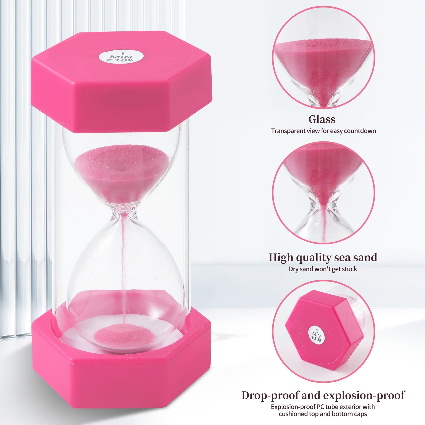 - Sicher und sturzsicher:Sanduhr Timer besteht hauptsächlich aus hochwertigem PVC und ausgewähltem Seesand, das Material ist umweltfreundlich und nicht verschmutzend, das doppellagige Anti - Fall - Design sorgt dafür, dass Eltern mehr Ruhe haben.