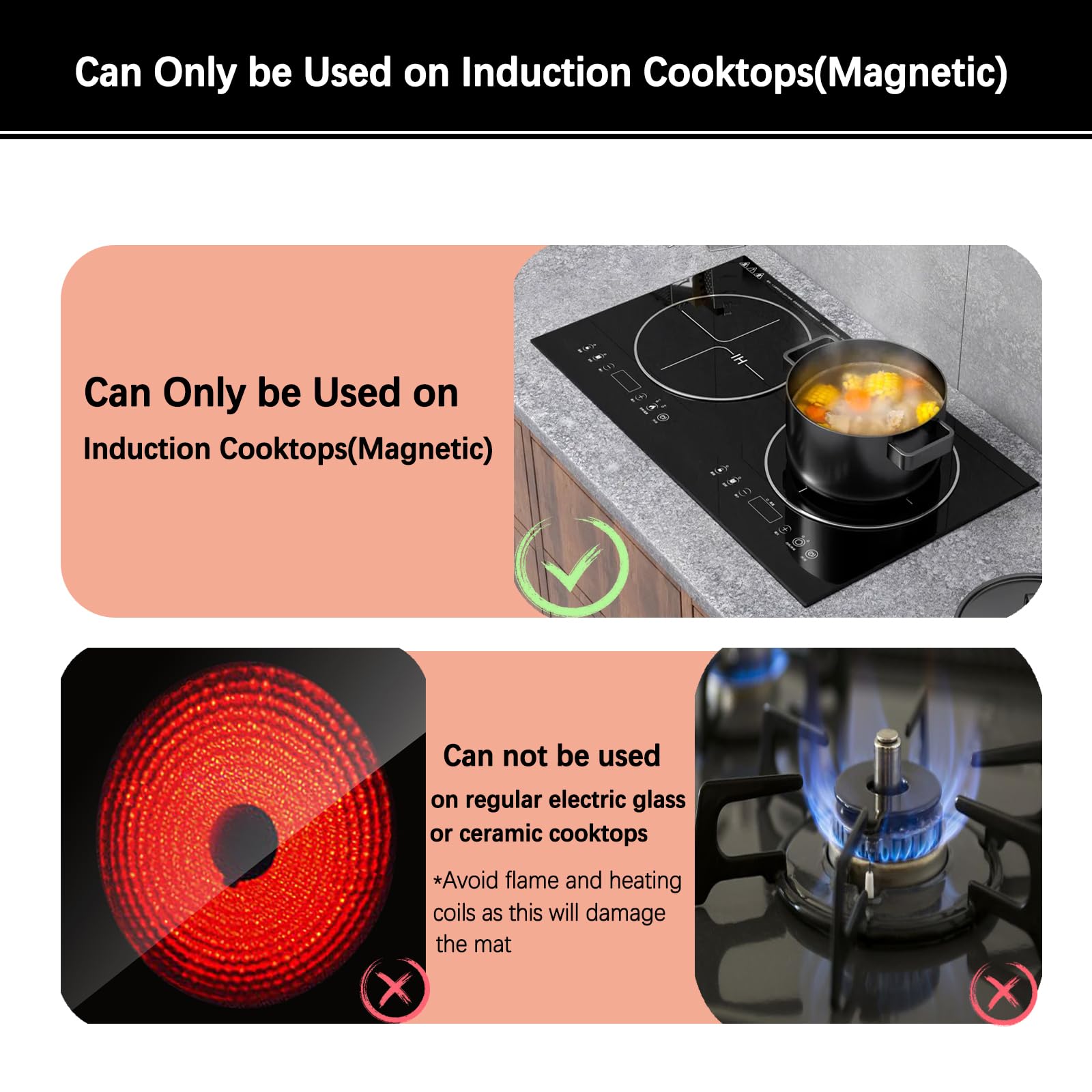 - 【Achtung】Nicht zur Verwendung auf normalen elektrischen Glas- oder Keramikkochfeldern geeignet nur zur Verwendung auf Induktionsherd (magnetisch). Do not use the silicone mat when temperature above 230℃/450℉.