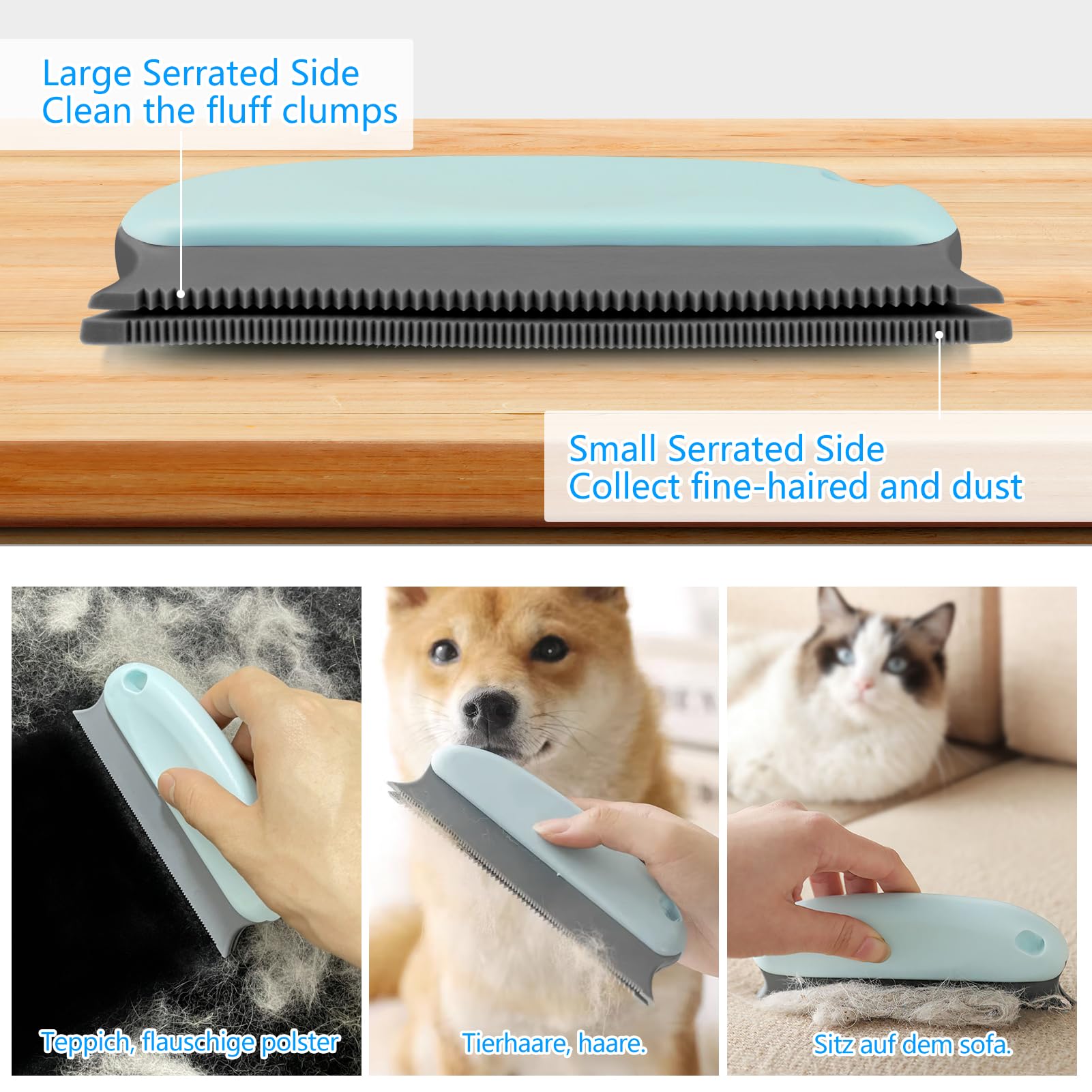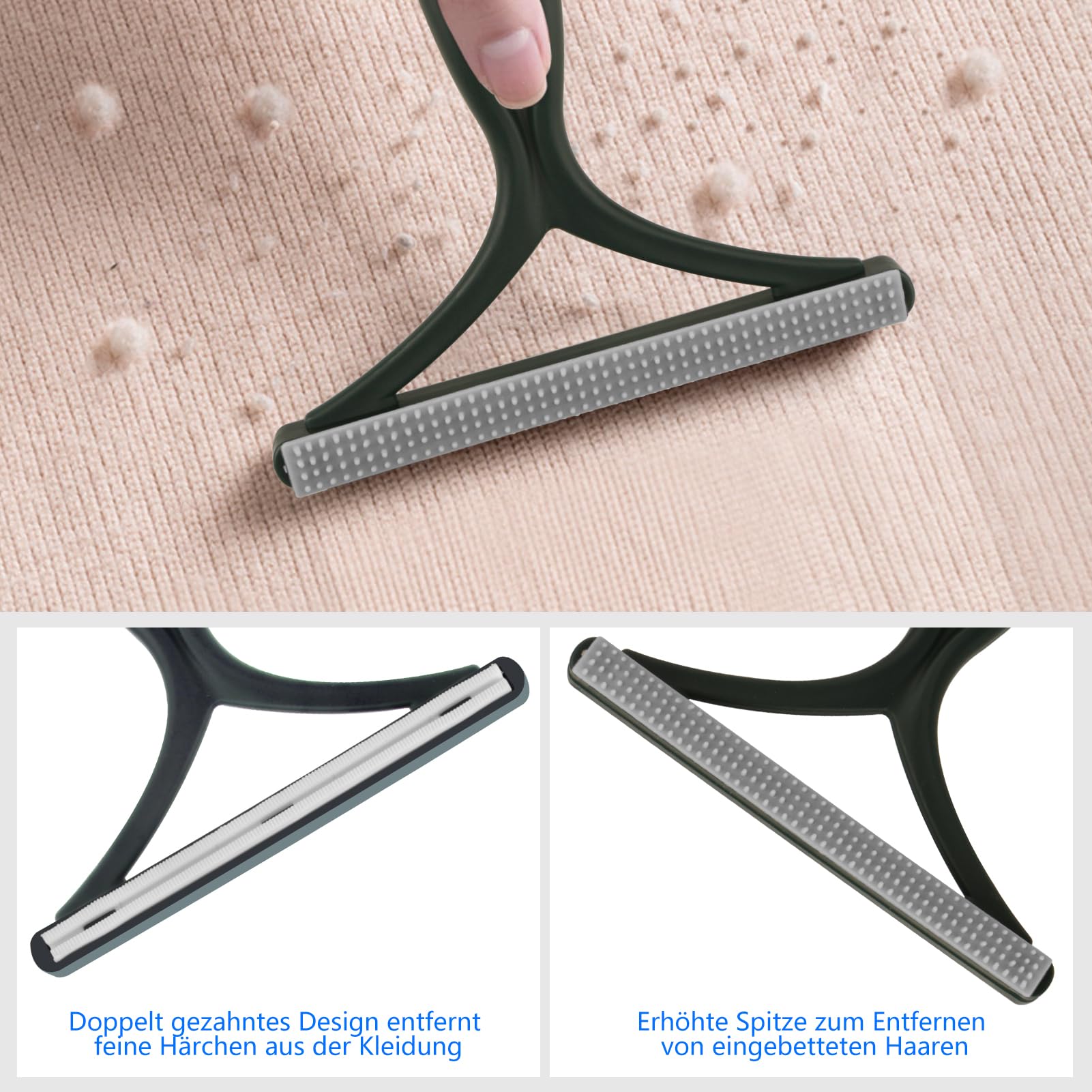 - 【Y-förmig Tierhaarentferner】:Der Y-Haarentferner ist aus weichem ABS- und TPR-Material gefertigt..eine Seite ist mit erhöhten Punkten bedeckt, die tief in die eingebetteten Katzenhaare und Hundefelle eindringen können.Eine Seite ist gezahnt, um den Stoff zu glätten und Flusen aus der Kleidung zu entfernen.
