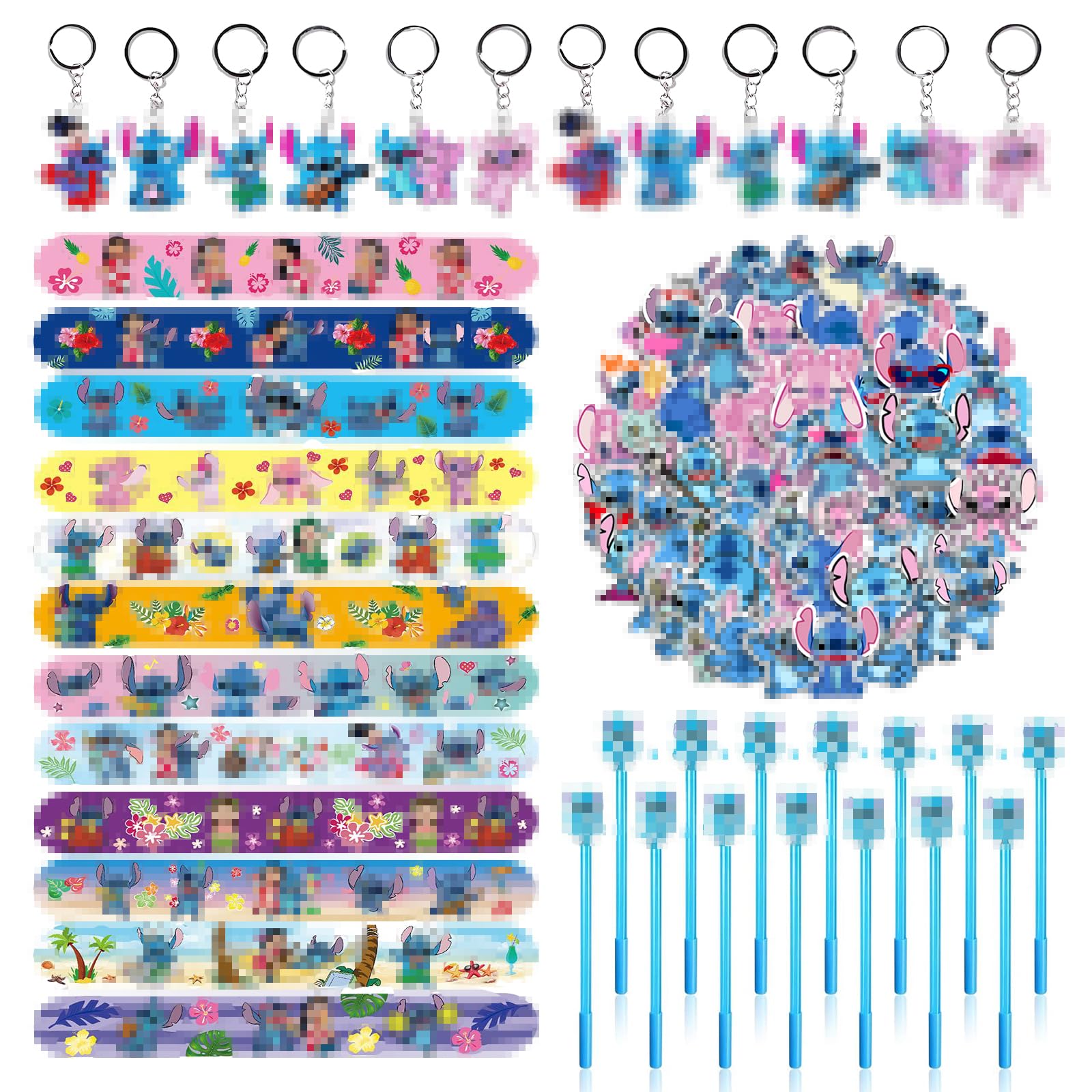 12 × Slap Armbänder, 12 × Schlüsselanhänger, 12 × Gel-Tintenstift, 50 × Aufkleber