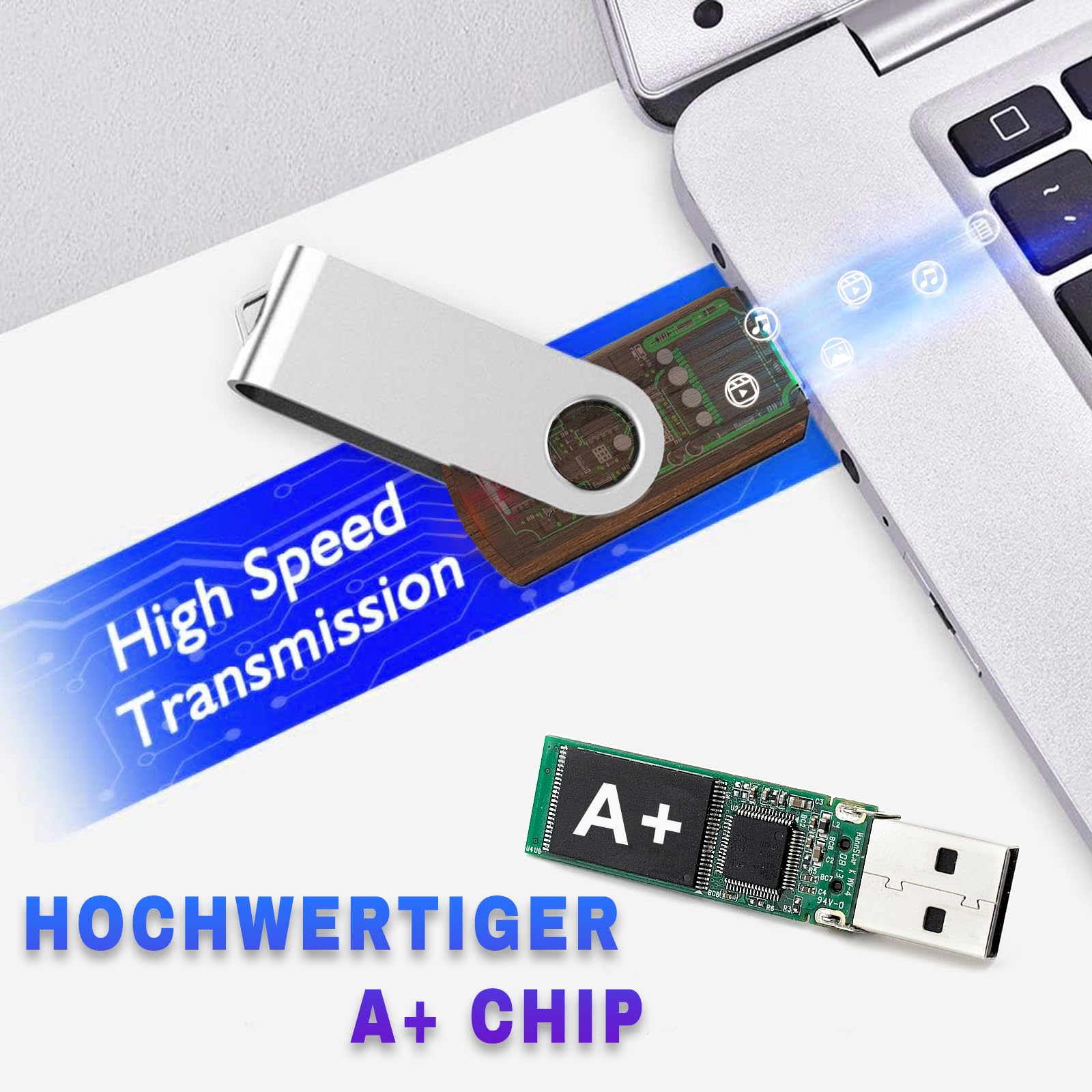 - 360° ROTIERBARES DESIGN: Der drehbare Clip der usb stick 8GB aus Aluminiumlegierung sieht stilvoll aus. Sie müssen sich keine Sorgen machen, ihn zu verlieren, und der USB-Anschluss ist geschützt, wenn er nicht verwendet wird