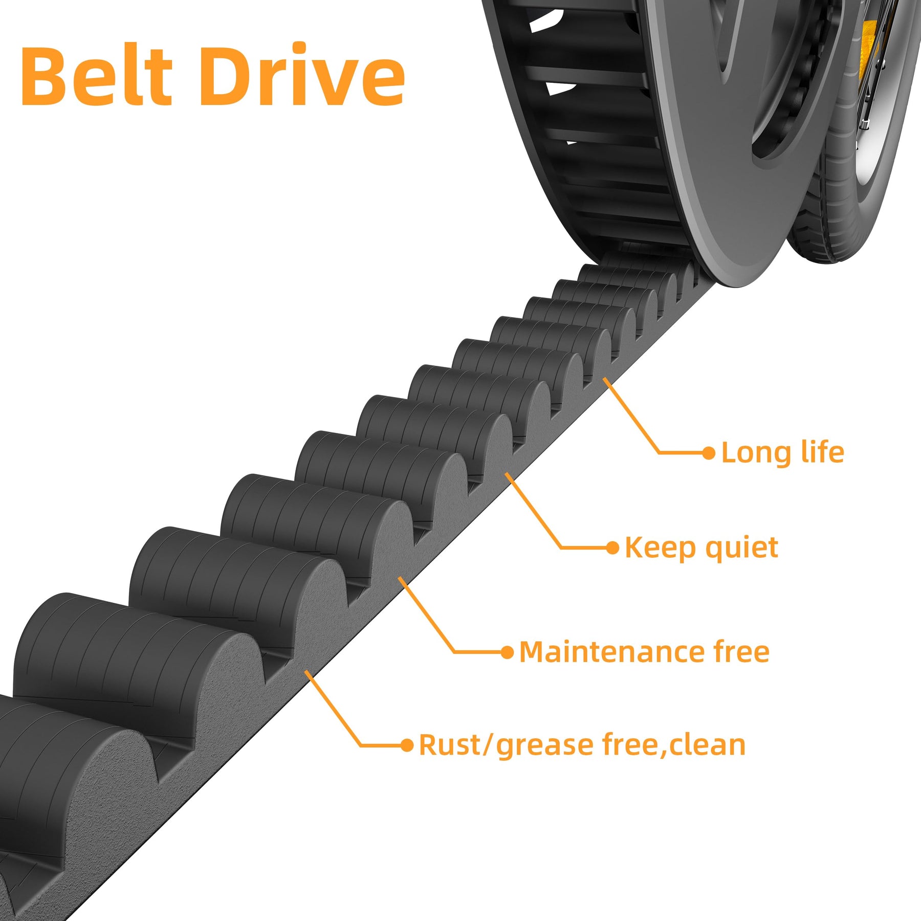 【Riemenantrieb】 Das Riemenantriebssystem bietet eine völlig neue Übertragungsmethode für den Air 20 Pro, die die Vorteile eines geringen Gewichts – 36 % leichter als herkömmliche Ketten, einer sanfteren Übertragung und keinem Leerlauf – mit einem Übertragungswirkungsgrad von bis zu 98 % bietet Längstorsionskraft. Effizienter, wartungsfrei, umweltfreundlich, geräuschlos