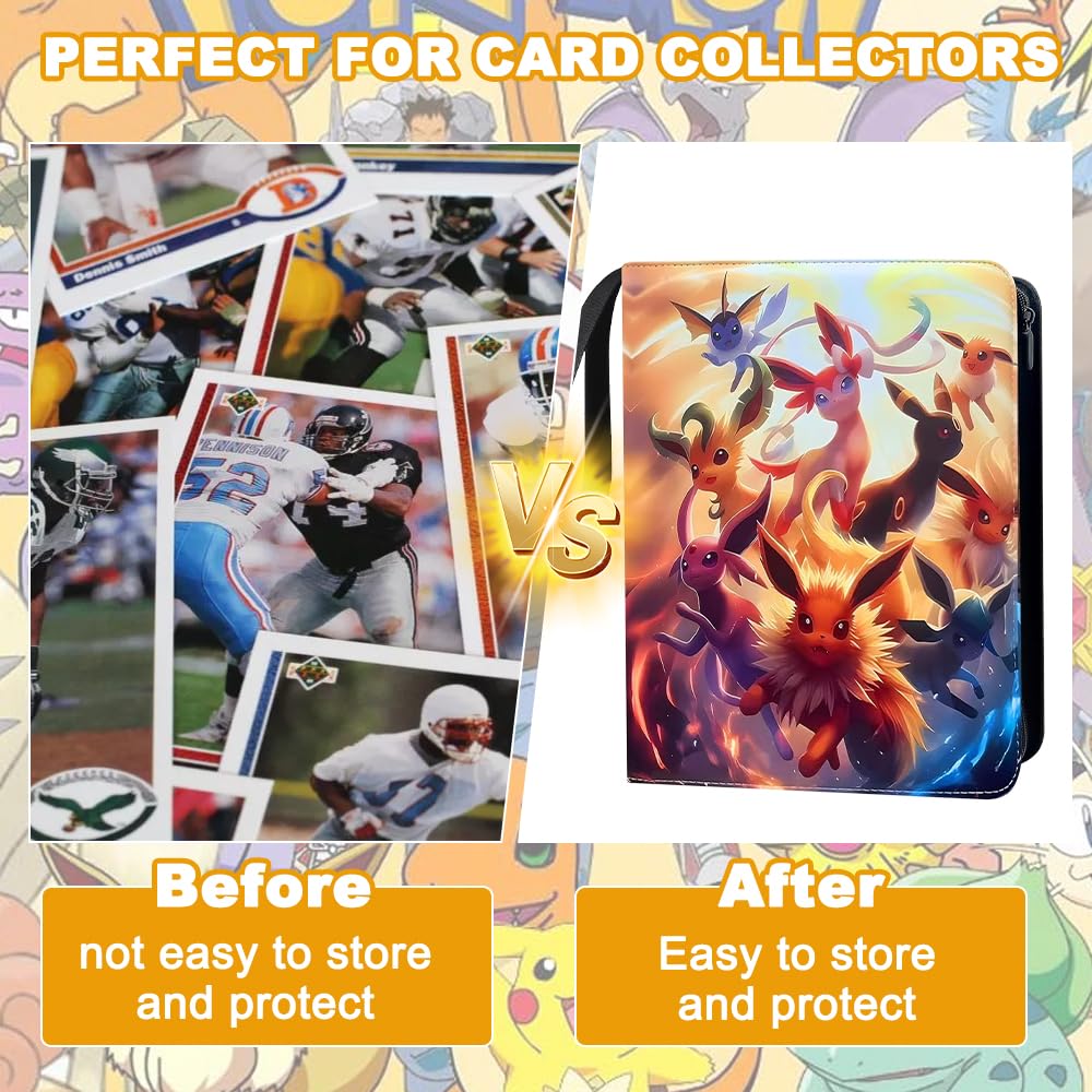 - 🐰【Griffgürtel-Design】 Unser Sammelalbum für Pokemon mit Reißverschluss, kann leicht geöffnet und geschlossen werden, bietet hervorragenden Schutz für Ihre Karten. Der Sammelkartenalben ist Griffgürtel-Design wurde entwickelt, um Ihnen das Tragen und Reisen zu erleichtern.