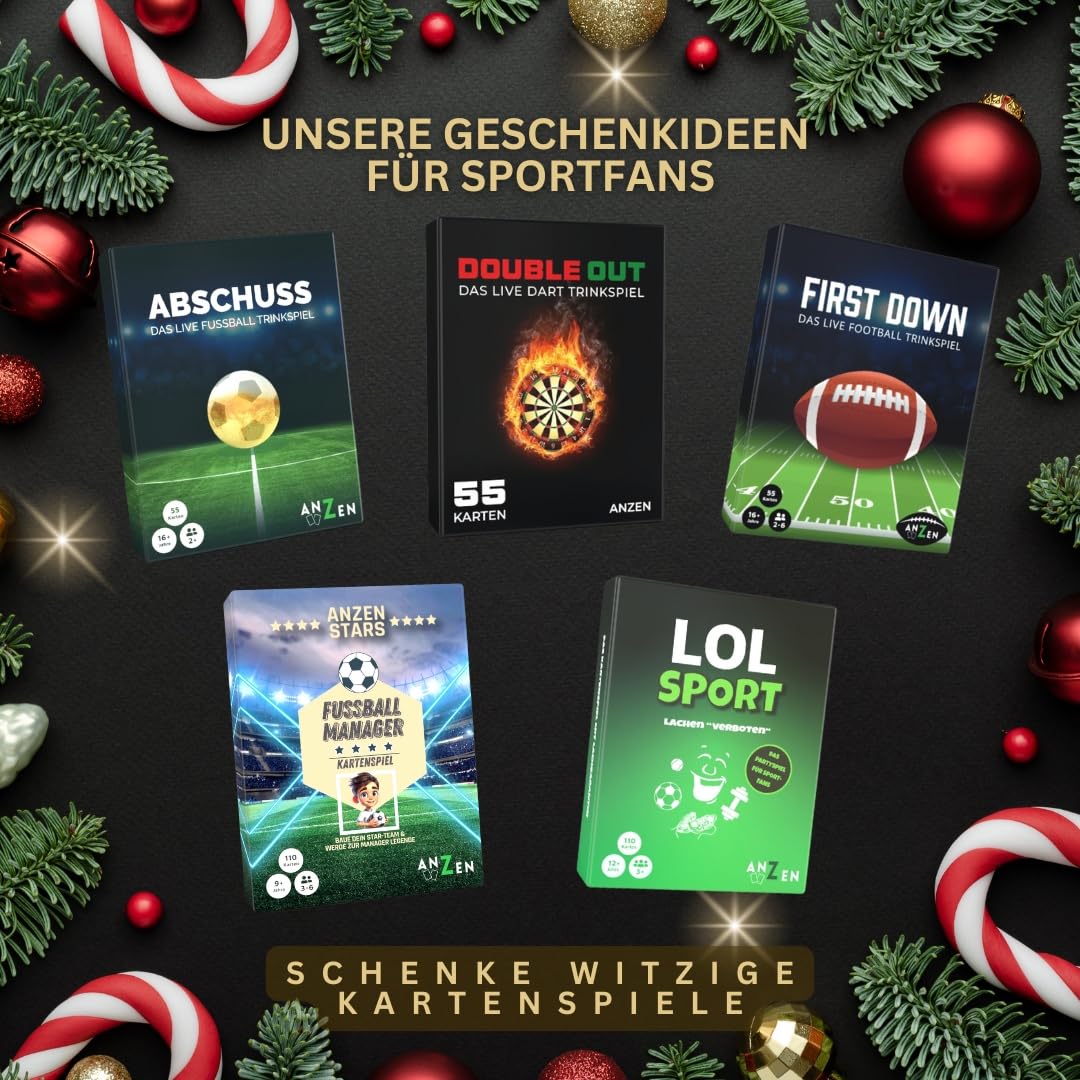 - 👀 Hier zeigt sich ob sich deine Freunde beim Fußball auskennen. Live spielbar zu allen Live-Spielen. Ideales und lustiges Wichtelgeschenk, Geschenk für Mann und Scherzartikel. Kartentrinkspiel. Fortsetzung der Reihe FIRST DOWN, LOL – Das Trinkspiel