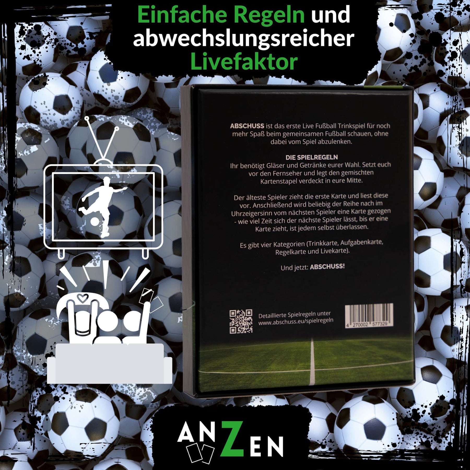 - 💯Prozent positives Feedback zu dieser neuen Live-Spielidee. Egal ob Fußball-Laie oder Experte – jeder hatte Spaß und ein einzigartiges Spielerlebnis. Somit handelt es sich bei ABSCHUSS um den perfekten Fanartikel für alle Fussballfans.
