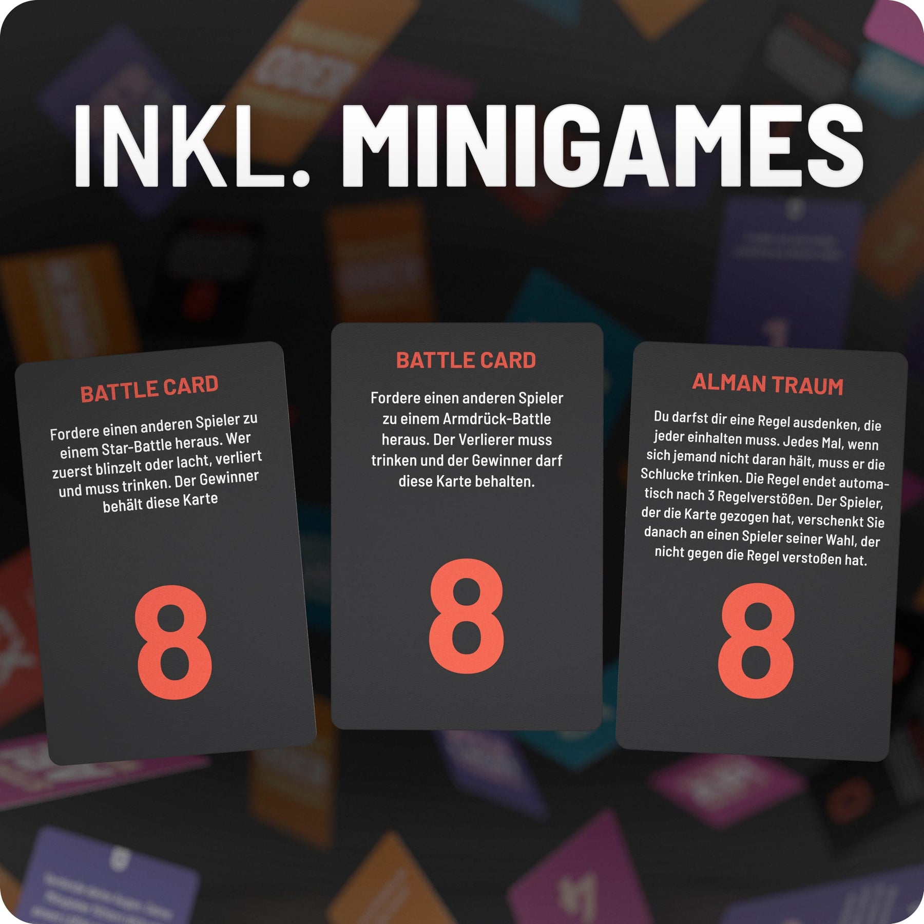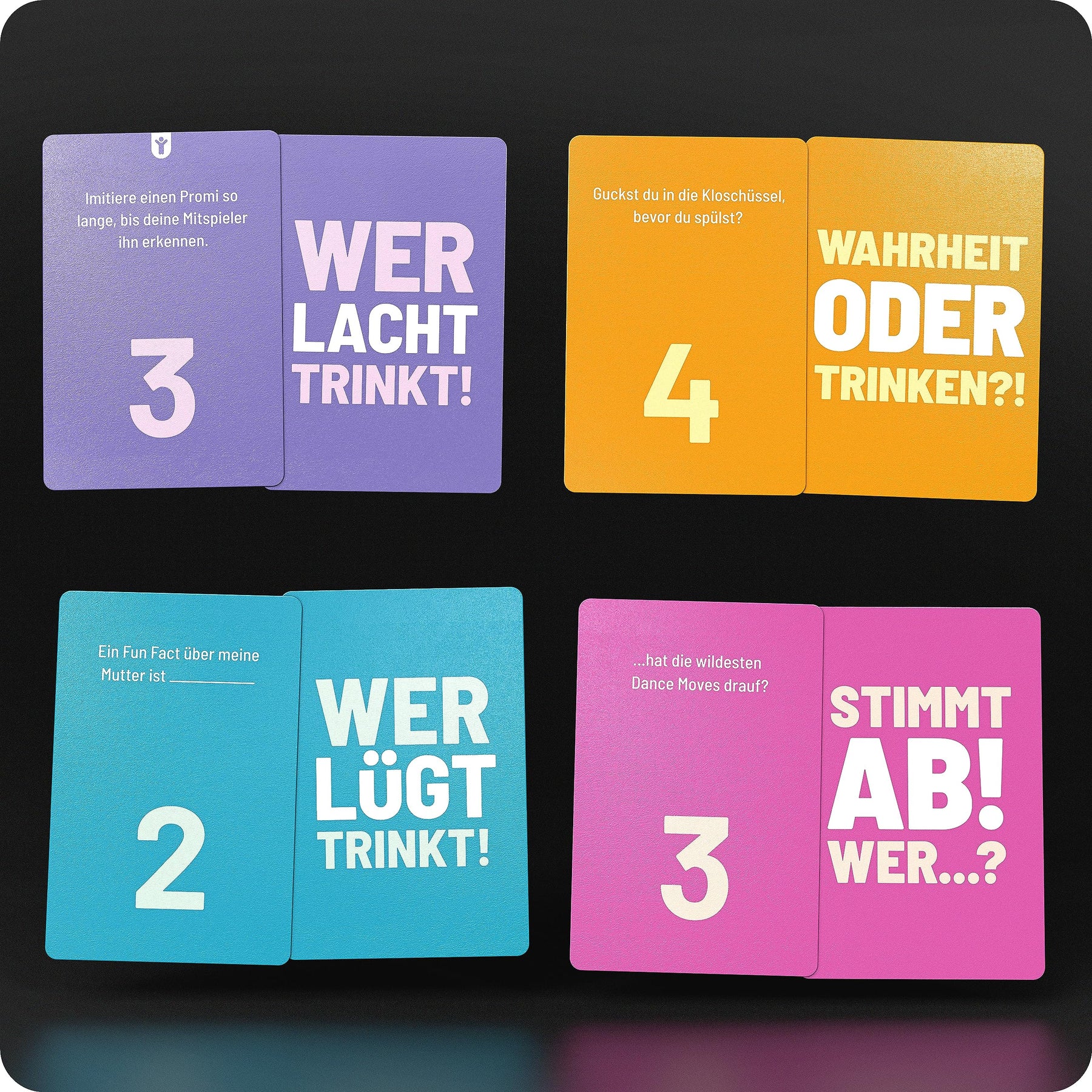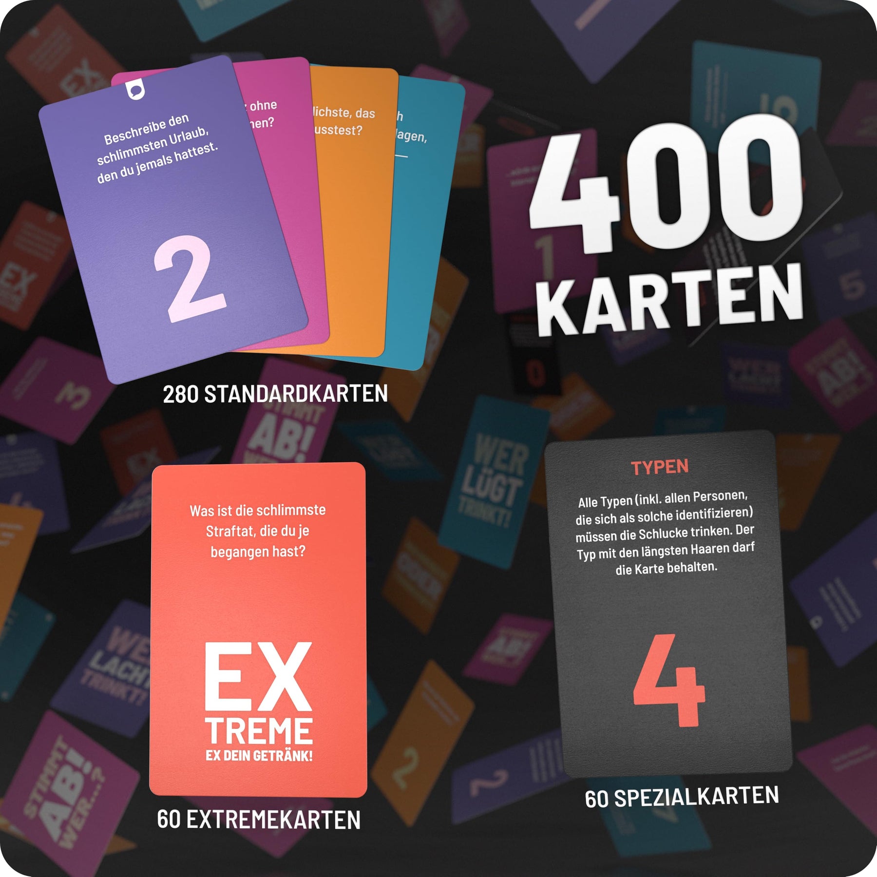 - 400 SPIELKARTEN 💪 - Unser Set enthält 400 geniale Trinkspiel Karten mit abwechslungsreichen, ultraspannenden und extremlustigen Aufgaben ab 18 - mehrfach und in größeren Gruppen spielbar.