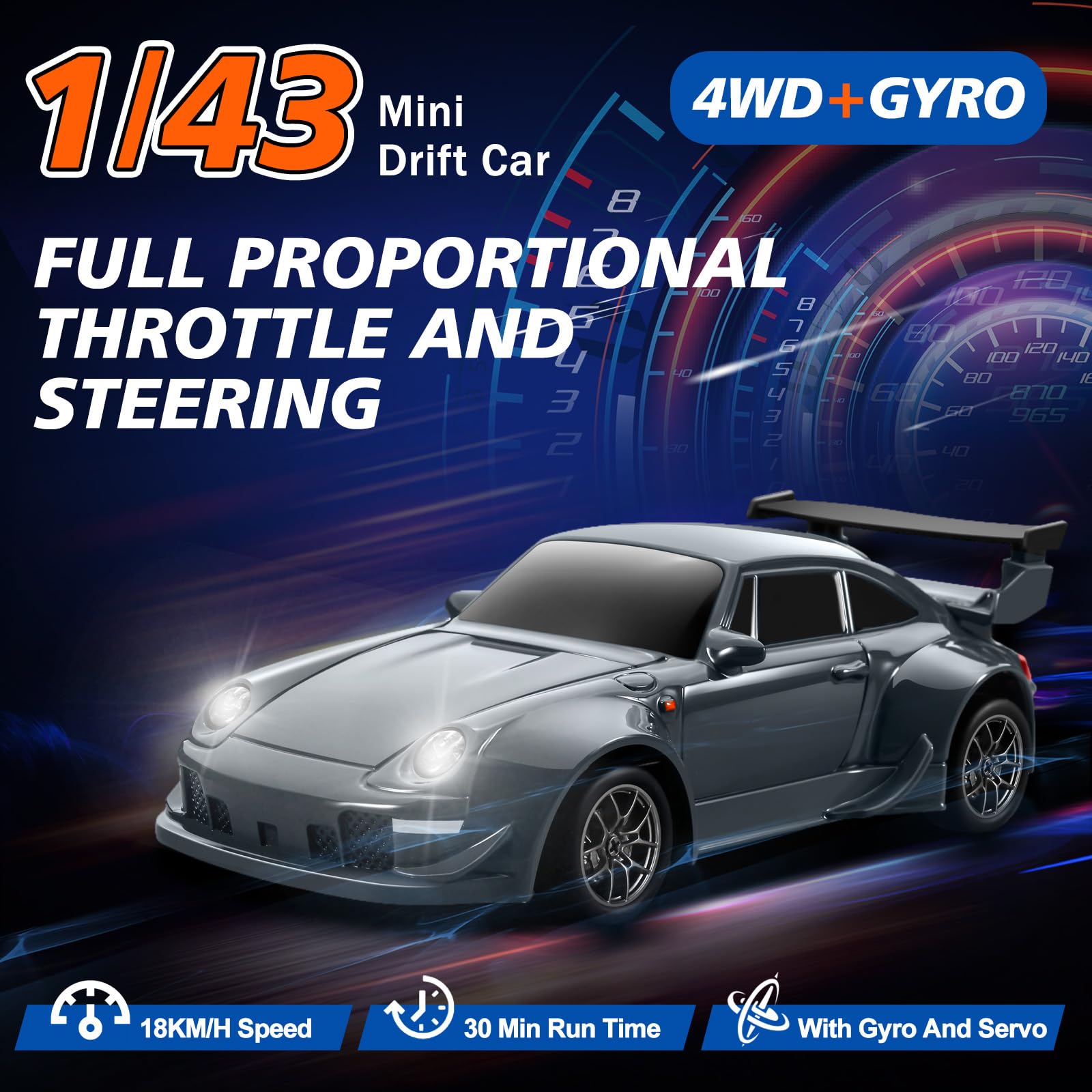 • Mit Gyroskop zum Driften: Dieses Drift-Auto mit Gyroskop kann den Reifenversatzwinkel während des Drehvorgangs automatisch korrigieren, was das Driften sanfter macht. Darüber hinaus können Sie die Stärke des Gyroskops einstellen oder es auf der Fernbedienung für verschiedene Spieler ausschalten.
