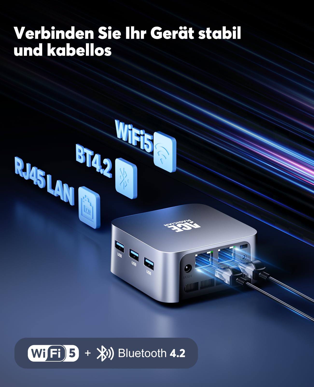 • 【Hervorragender Speicher] Der ACEMAGICIAN T8Plus Mini PC W 11 Pro ist mit 12 GB Single-Channel-LPDDR5 (nicht erweiterbar) und 256 GB M.2 2242 SATA SSD (erweiterbar auf bis zu 2 TB) ausgestattet, so dass Sie problemlos mehrere Aufgaben erledigen können, ohne Angst vor großen Speicheranwendungen und -dateien haben zu müssen, und alle Ihre Dokumente und Videos problemlos speichern können. PS: Aufgrund der kompakten Größe des Geräts wird eine HDD-Erweiterung nicht unterstützt.