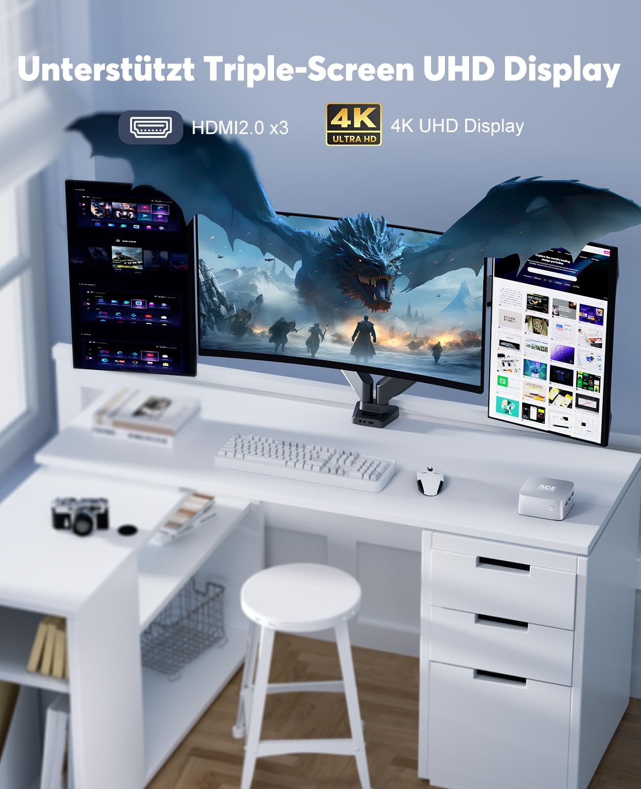 ACEMAGICIAN T8Plus Mini PC,12th Gen Ιntel Alder Lake N100 Mini PC (bis zu 3,40 GHz),12GB LPDDR5 256GB M.2 SSD Pocket Mini PC mit W11 Pro l Dual RJ45 | 4K HDMI*3 | WiFi 5 für Zuhause/Büro/Schule