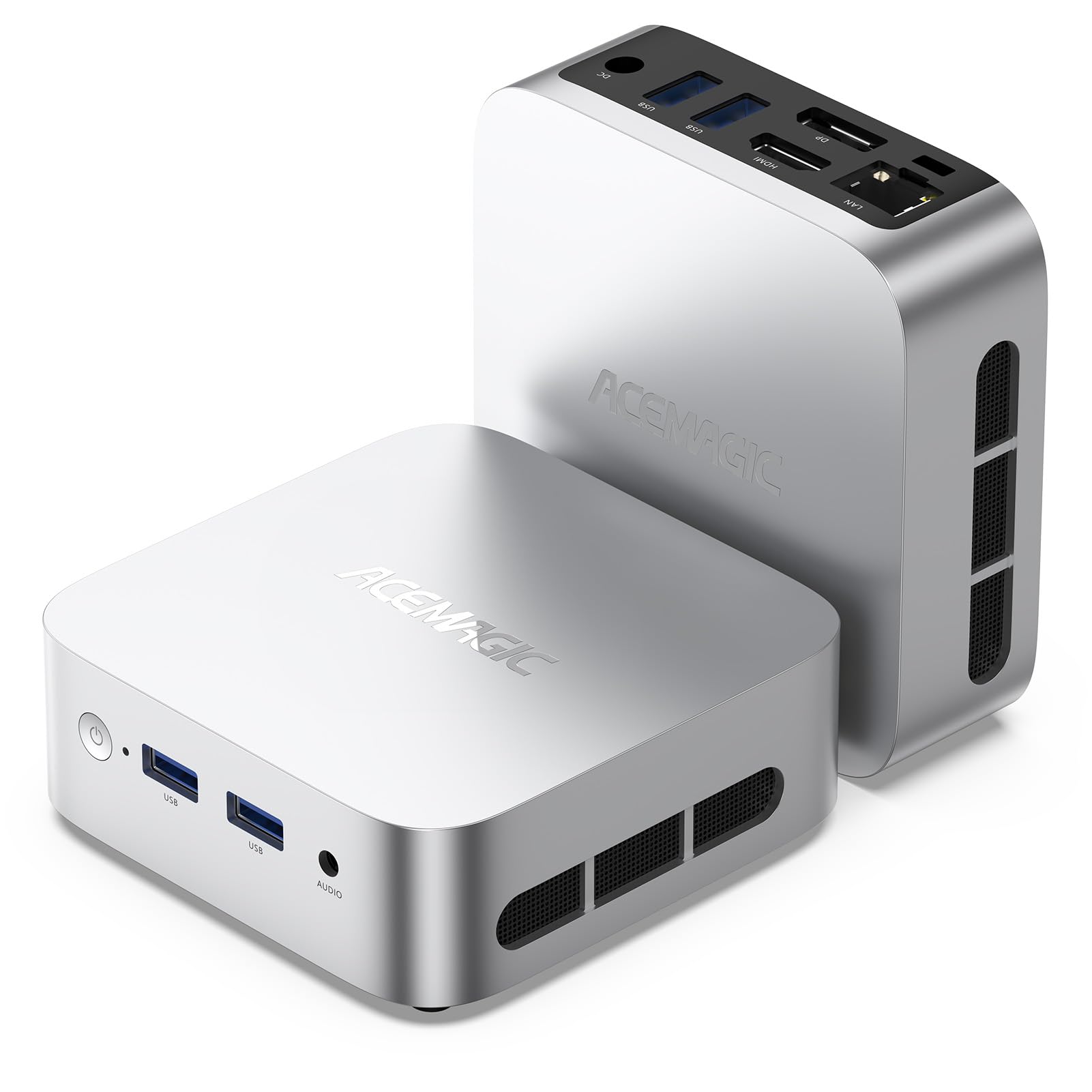 - 🔹[Neue Aktualisierung & hocheffizientes Kühlsystem] - Der tragbare Mini-PC hat ein silbernes Gehäuse und kann jederzeit in einer Tasche verstaut werden, ideal für Geschäftsreisen. Er spart Platz durch seine superminimale Größe (3,9 x 3,9 x 1,3 Zoll) und eine VESA-Halterung zur Installation an Wänden oder Monitoren. Die Form des V1 wurde kürzlich verbessert, um die Wärmeableitung zu optimieren und einen kontinuierlichen und stabilen Betrieb des Mini-PCs zu ermöglichen. Der Kühlventilator ist bei geringer Last praktisch geräuschlos und bleibt auch unter Last relativ leise; minimales oder nicht hörbares Lüftergeräusch ist perfekt, um sich auf die Aufgabe zu konzentrieren!