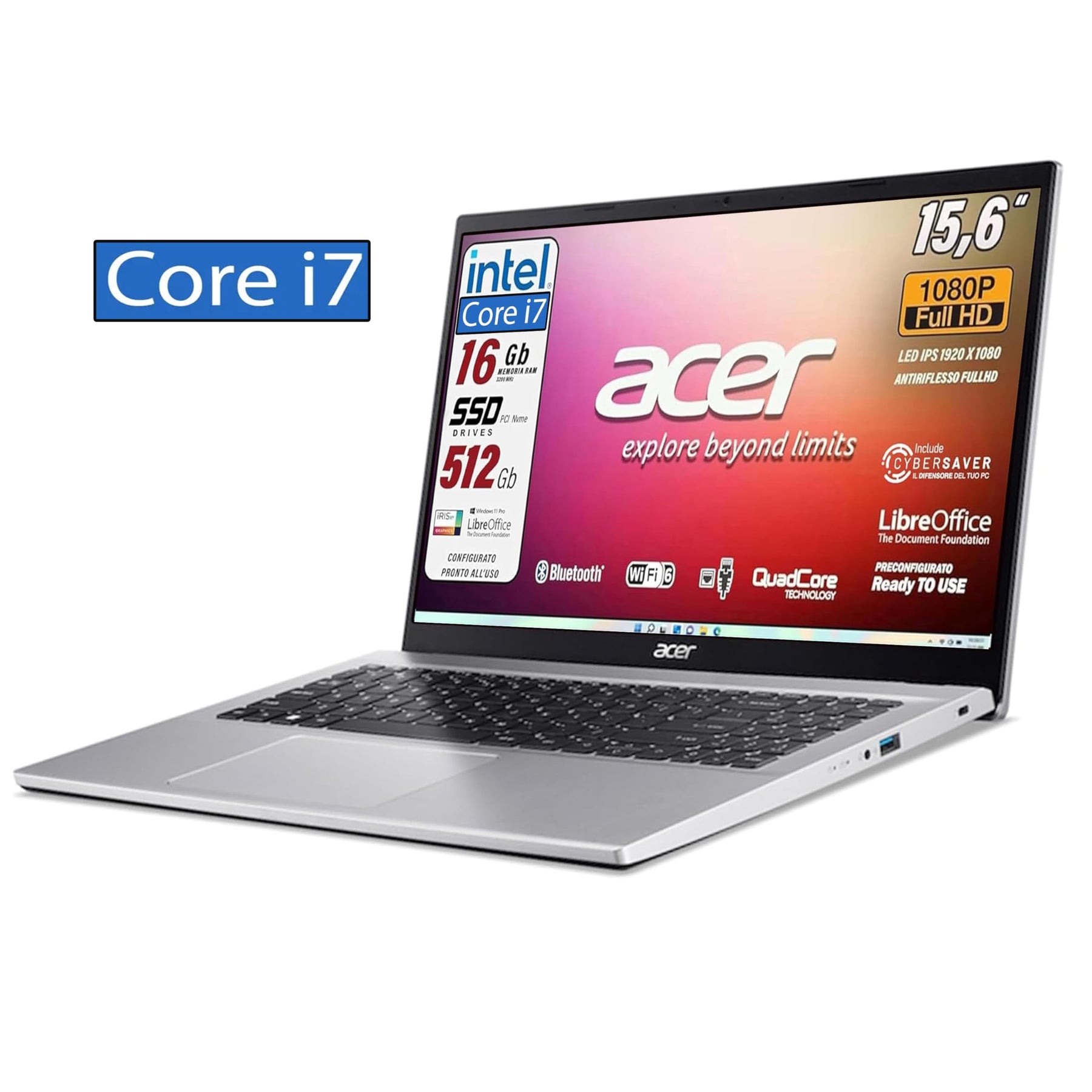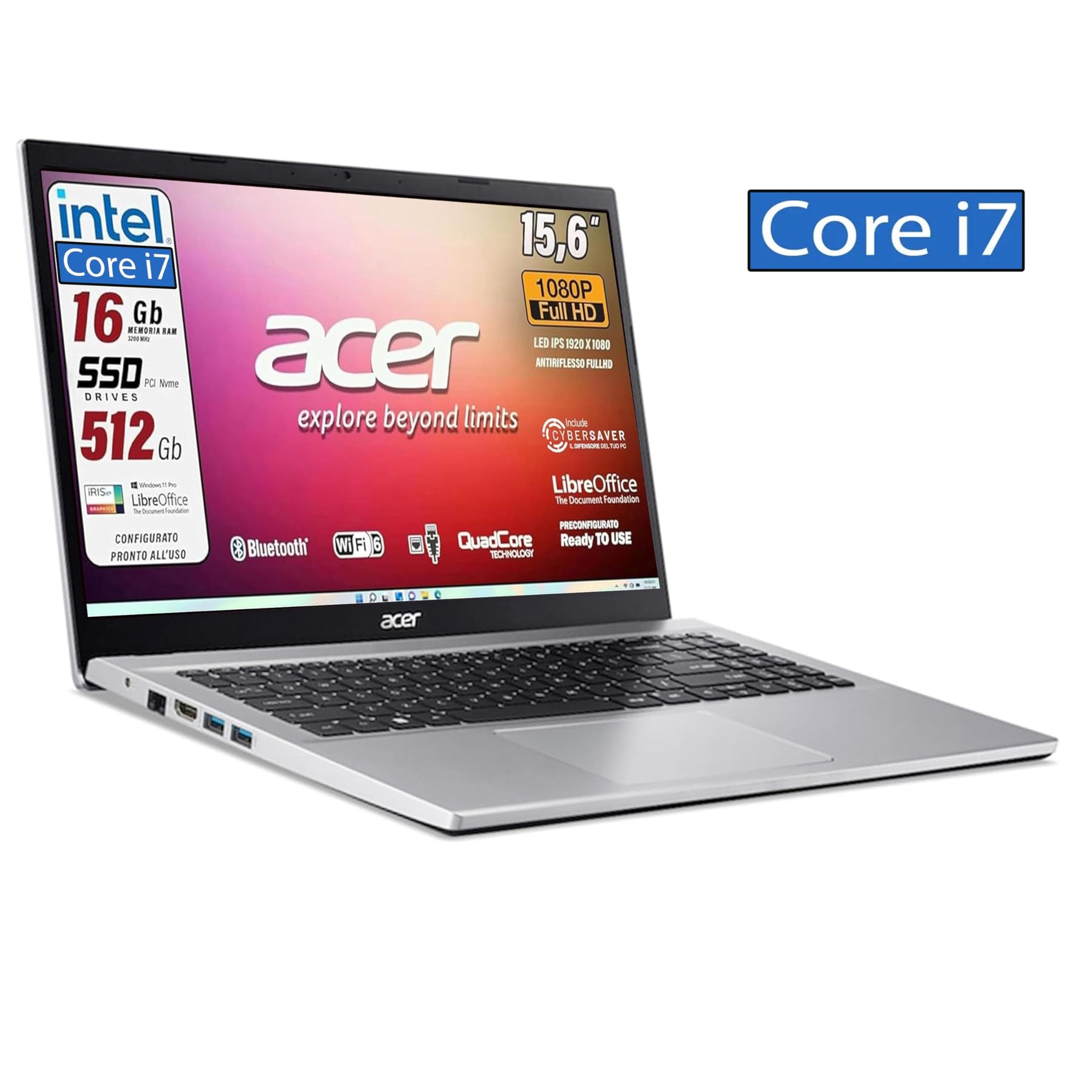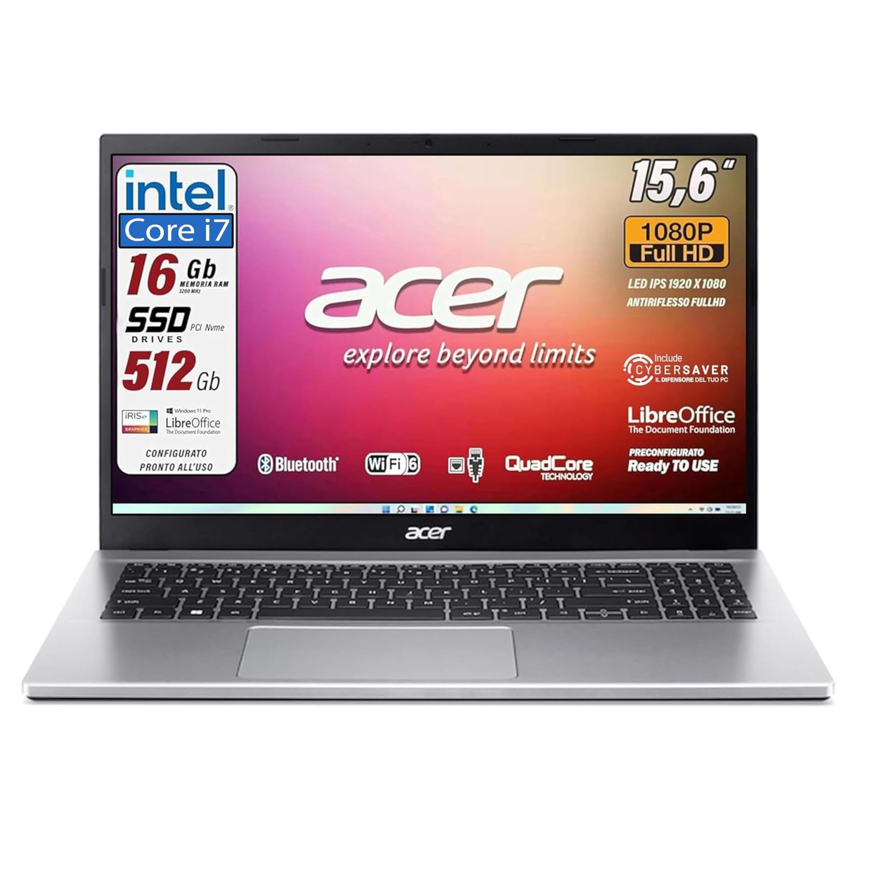 Einzelheiten: ➡️Notebook Acer Aspire Silver dedizierte Edition, italienische QWERTY-Tastatur, Prozessor Intel Core i5-1235U, bis zu 4,40 GHz, 10 Kore, Grafikkarte Intel Iris Xe UltraHD 1920 x 1080, Full-HD-Display 15,6 Zoll narrow Bezel ultradünn, RAM 16 GB DDR 4, DISCO SSD pCI nVME mit 512 GB, Webcam HD in Farbe, 3 USB-Anschlüsse, WLAN 6, HDMI, Bluetooth, LAN 1 Gigabit ➡️Gewicht 1,7 kg Größe, 36 cm, 26 cm, 1,7 cm, integriertes Stereomikrofon, 2 itegrate Lautsprecher, 1 Netzteil, Ultra Slim Design, empfohlen für den professionellen Gebrauch, Unternehmen ale, Fotobearbeitung Oder Die Akkulaufzeit beträgt mindestens 2 Stunden bis maximal 6 Stunden, abhängig von der Verwendung und dem eingestellten Setup. Italienischer Support immer garantiert, offizielle Garantie 2 Jahre ➡️Sofort einsatzbereit mit Installation aller Systemtreiber, keine Initialisierung erforderlich, Produkt beim ersten Start, Installation von Windows 11 Pro 64 Bit italienische Version, Suite Libre OFFICE , Antivirus DE. Unentbehrliche Fender und Nutzen. Jedes einzelne Produkt wird vor dem Versand sorgfältig vorkonfiguriert und neu verpackt, um einen hohen Qualitätsstandard zu gewährleisten. Lieferumfang: Acer Intel i5 Laptop der 12 Generation, 16 GB RAM, 512 GB SSD und SVGA Intel IRIS XE ULTRA HD, Rechnung in Italien basierend auf den LIEFERTE DATEN Das Produkt ist neu und vorkonfiguriert wie angegeben, italienische Garantie 24 Monate.