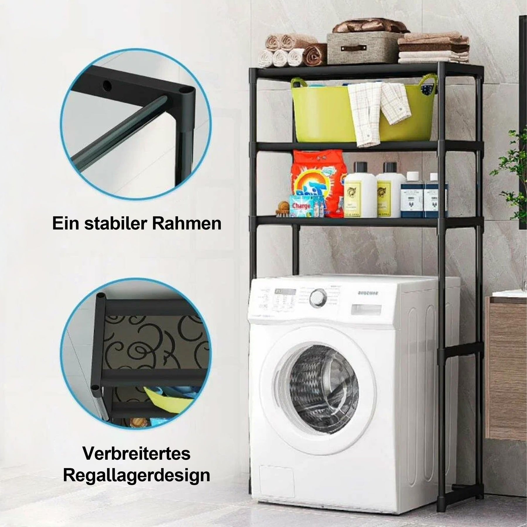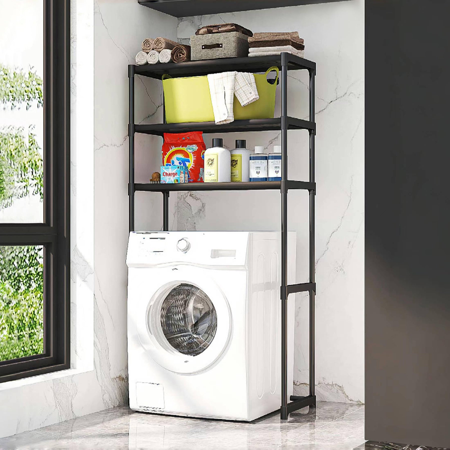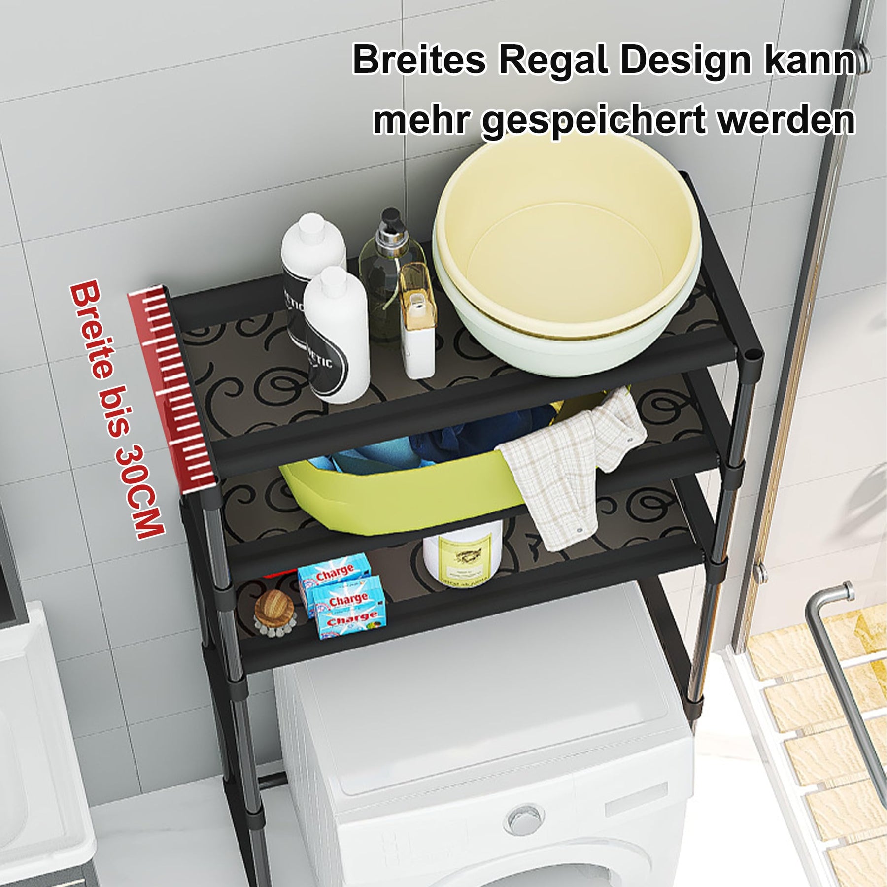acfeco Waschmaschinenregal mit 3 Ablagen, Waschmaschinen Regal, Badezimmerregal, Regal über Waschmaschine Toilette, Badregal, WC Regal Platzsparender(Schwarz)