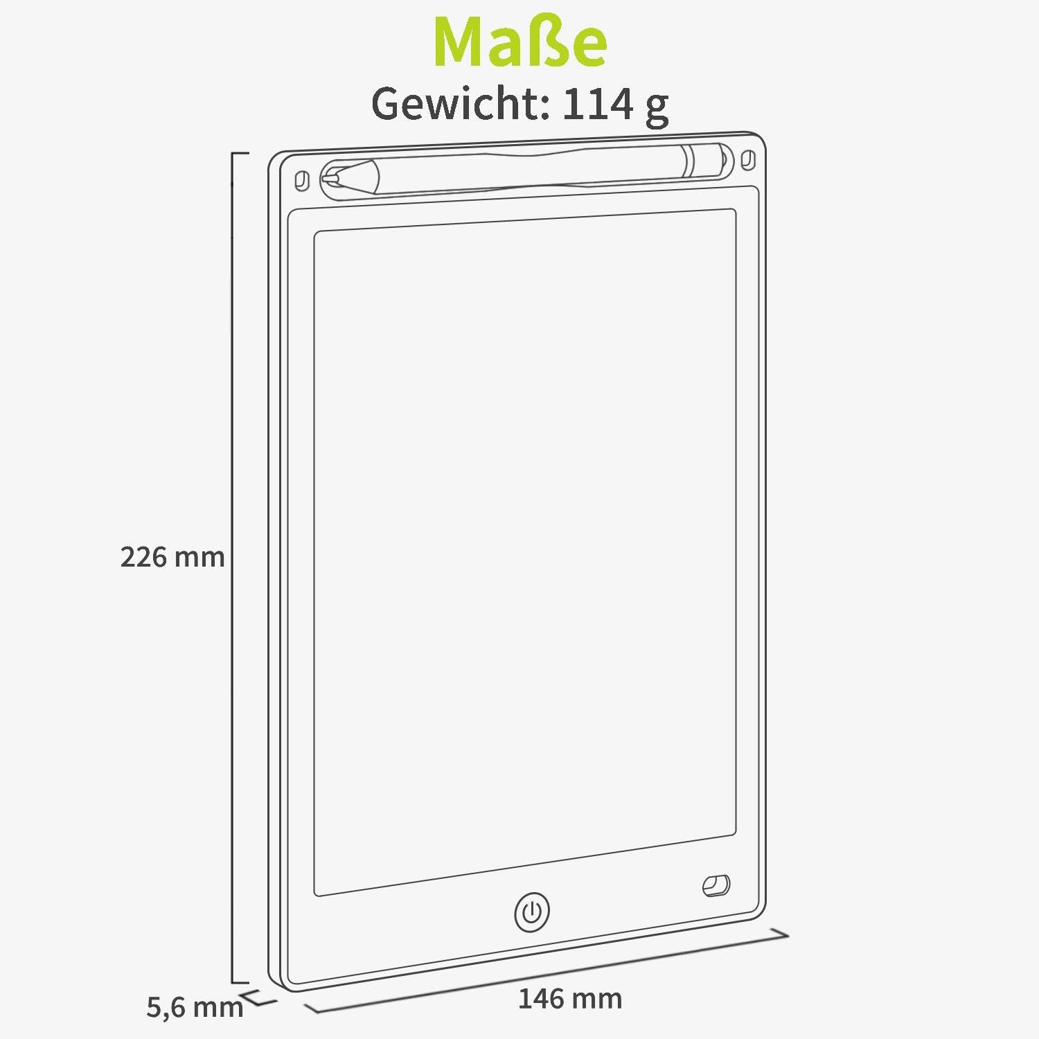 Tragbar und handlich - Mit seinem schlanken und leichten Design ist unsere LCD Schreibtafel Kinder 8.5 Zoll äußerst tragbar und eignet sich daher perfekt für Reisen, Autofahrten oder spontane kreative Sessions - überall und jederzeit Stylus: Erstellen Sie mühelos geschätzte Meisterwerke. Der mitgelieferte Stylus gewährleistet präzises Zeichnen und fördert die feinmotorischen Fähigkeiten und die imaginative Spielfreude angehender Künstler.