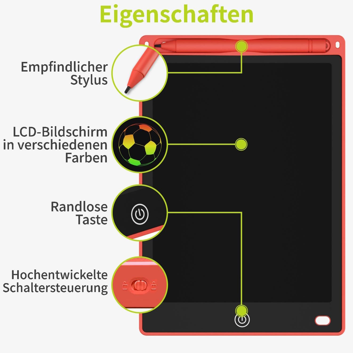 Einzelheiten: Entfesseln Sie die grenzenlose Kreativität in Ihrem Inneren mit unserem LCD Schreibtafel Kinder 8.5 Zoll - dem ultimativen tragbaren elektronischen Drawing Tablet, das endlose Stunden künstlerischer Entdeckungen und Spaß für Kinder jeden Alters garantiert. Verabschieden Sie sich von herkömmlichem Papier und begrüßen Sie ein nachhaltiges und innovatives Zeichenerlebnis. Unser LCD Zeichentablett ist die perfekte Leinwand für Kinder und Erwachsene, um ihre Kreativität durch Skizzen, Kritzeleien, Notizen und vieles mehr auszudrücken, ohne dass Papier und Stifte benötigt werden. Sie suchen nach dem perfekten Geschenk, das Spaß und Kreativität vereint? Dann suchen Sie nicht weiter! Unser rotes 8.5-Zoll-LCD-Zeichentablett ist ein hervorragendes und durchdachtes Geschenk für Kinder jeden Alters, das ihre künstlerische Entwicklung fördert und ihnen unendlich viele Möglichkeiten zur Selbstdarstellung bietet. Unendliche Kreativität - Unser 8.5 LCD Writing Tablet bietet eine Leinwand für unbegrenzte Kreativität. Lassen Sie Kinder und Erwachsene gleichermaßen ihre künstlerischen Fähigkeiten erforschen, skizzieren, kritzeln und Ideen auf spielerische und umweltfreundliche Weise auf dem Zeichentablett Kinder notieren Strahlender LCD Schreibtafel - Das leuchtend rote Drawing Tablet verleiht jeder Zeichnung und Notiz einen Hauch von Aufregung. Das farbenfrohe Display steigert das Zeichenerlebnis und lässt die Kreationen hervorstechen