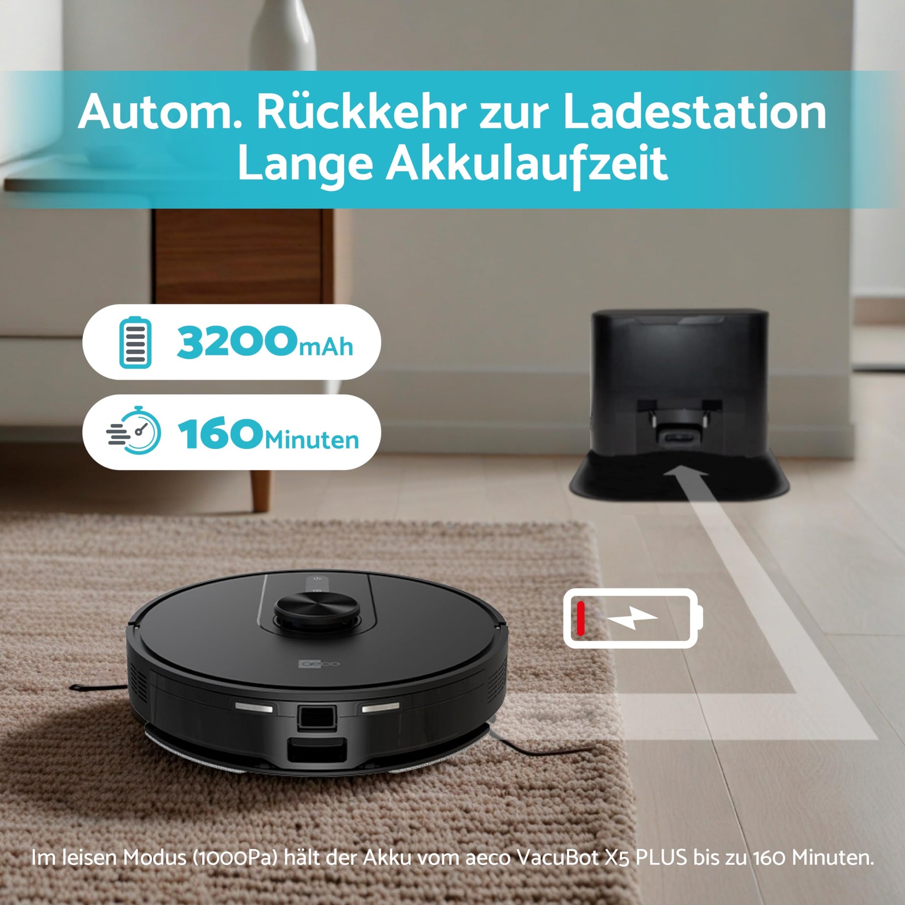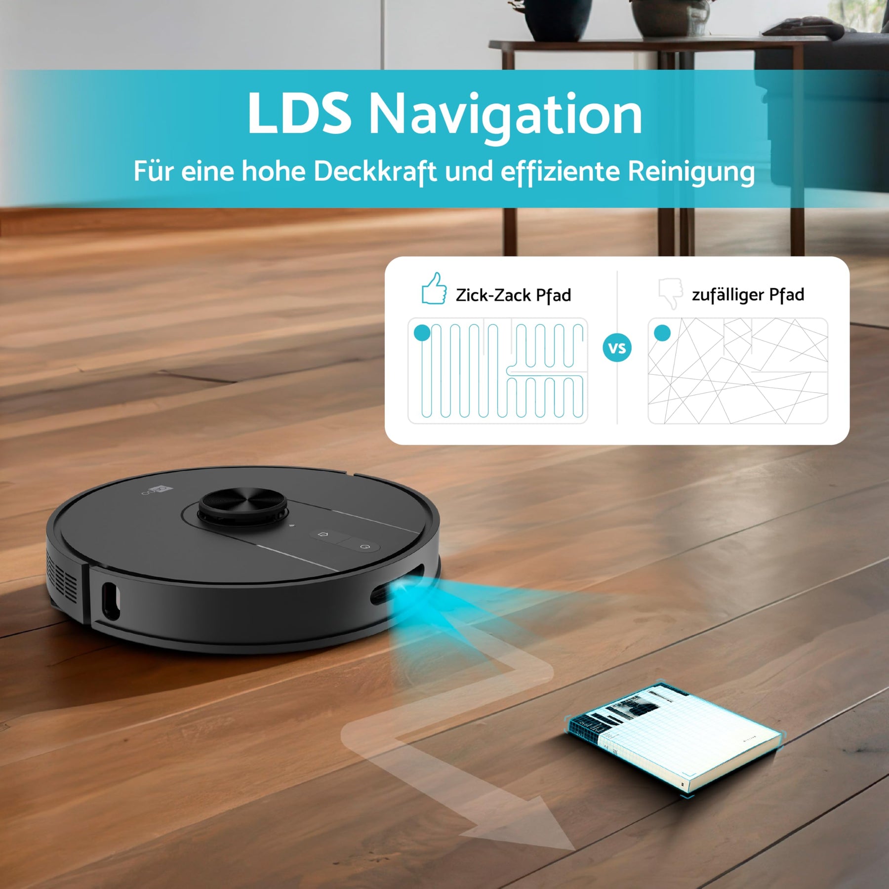 - Nie mehr vom richtigen Weg abkommen dank der innovativen LDS Navigationstechnologie. Dein aeco VacuBot X5 PLUS findet sich problemlos in deinem Zuhause zurecht und merkt sich bereits gereinigte Bereiche. Für eine sichere und präzise Navigation durch dein Zuhause und eine gründliche und effiziente Reinigung.