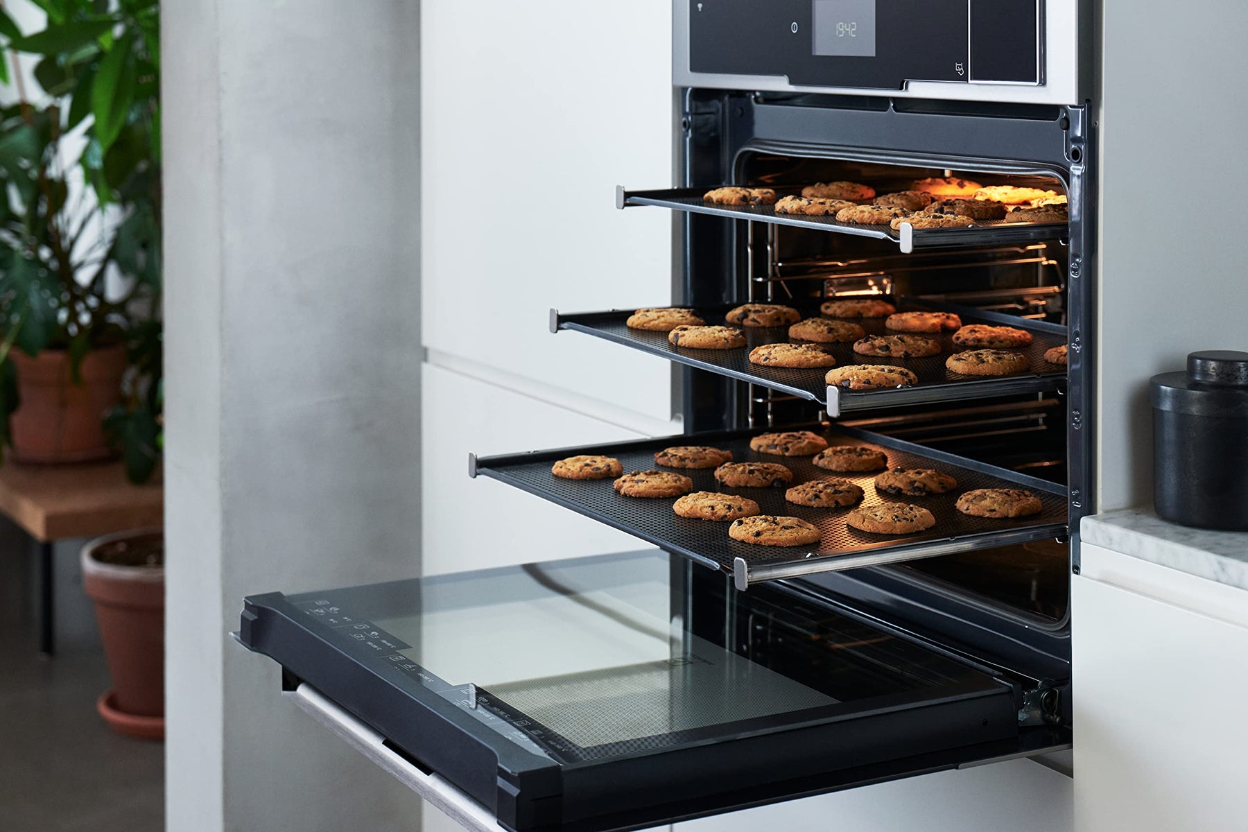 - Bleche einfach und sicher herausziehen - Ziehe das Blech bequem heraus und verfeinere dein Gericht, ohne das Blech festhalten zu müssen; Der Sicherheitsstopp verhindert, dass das Blech nach vorne kippt oder herausrutscht