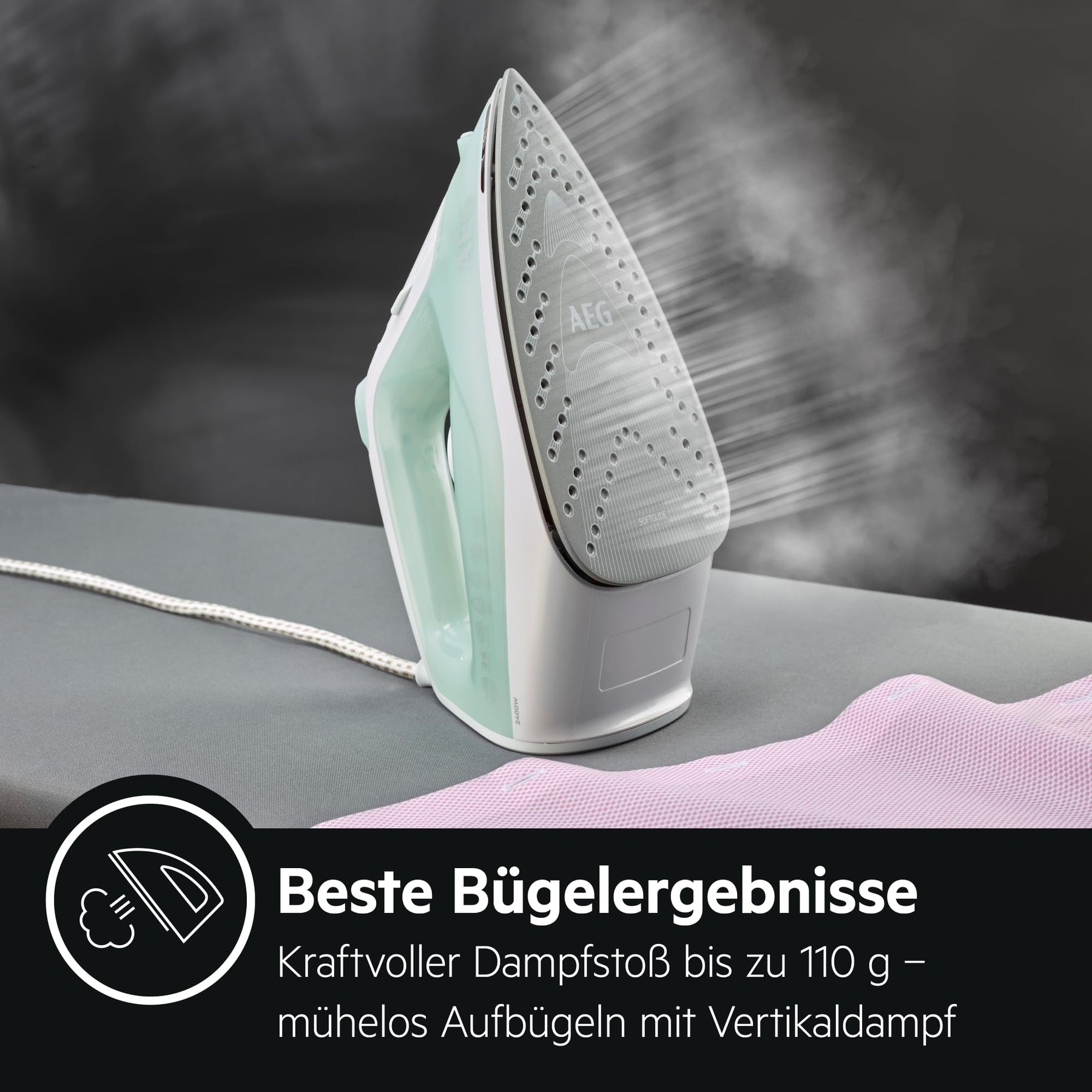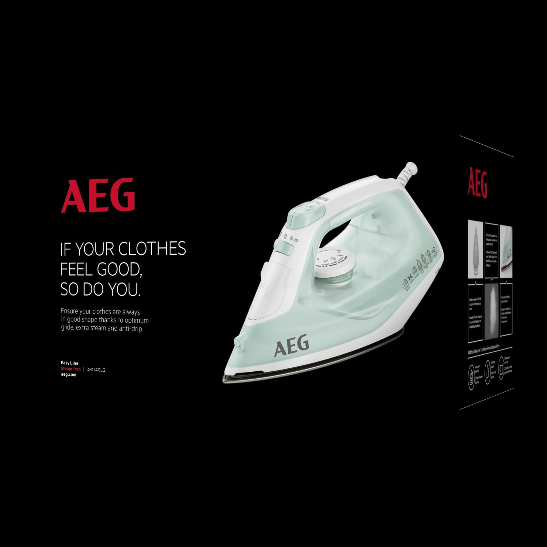 Das AEG EasyLine Dampfbügeleisen ist ein leistungsstarkes, handliches Dampfbügeleisen mit einem Plus an Sicherheit. Mit der SoftGlide Keramiksohle gleitet das Bügeleisen mühelos über die Stoffe. Für makellose Bügelwäsche, auch bei niedrigen Temperaturen, sorgt das Tropfstopp-System. Dank des integrierten Anti-Kalk-Systems ist mühsames Entkalken nicht mehr notwendig. Mit dem Vertikaldampf lassen sich optimal hängende Textilien bedampfen für z.B. besondere Kleidungsstücke, die nicht direkt gebügelt werden dürfen oder auch für das schnelle Aufbügeln von Jacken und Sakkos.