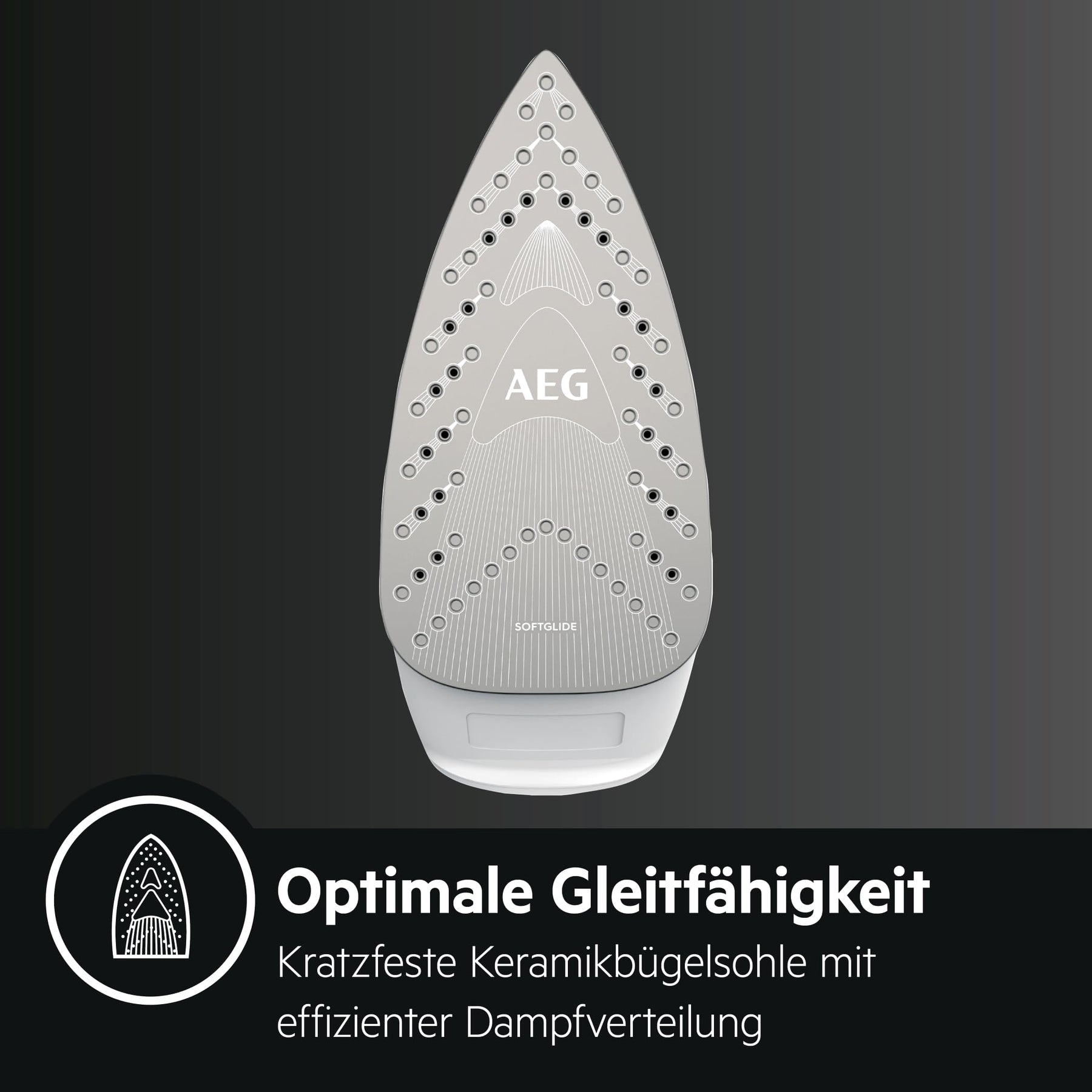 - Keramiksohle mit 26 aktiven Dampfaustrittsöffnungen