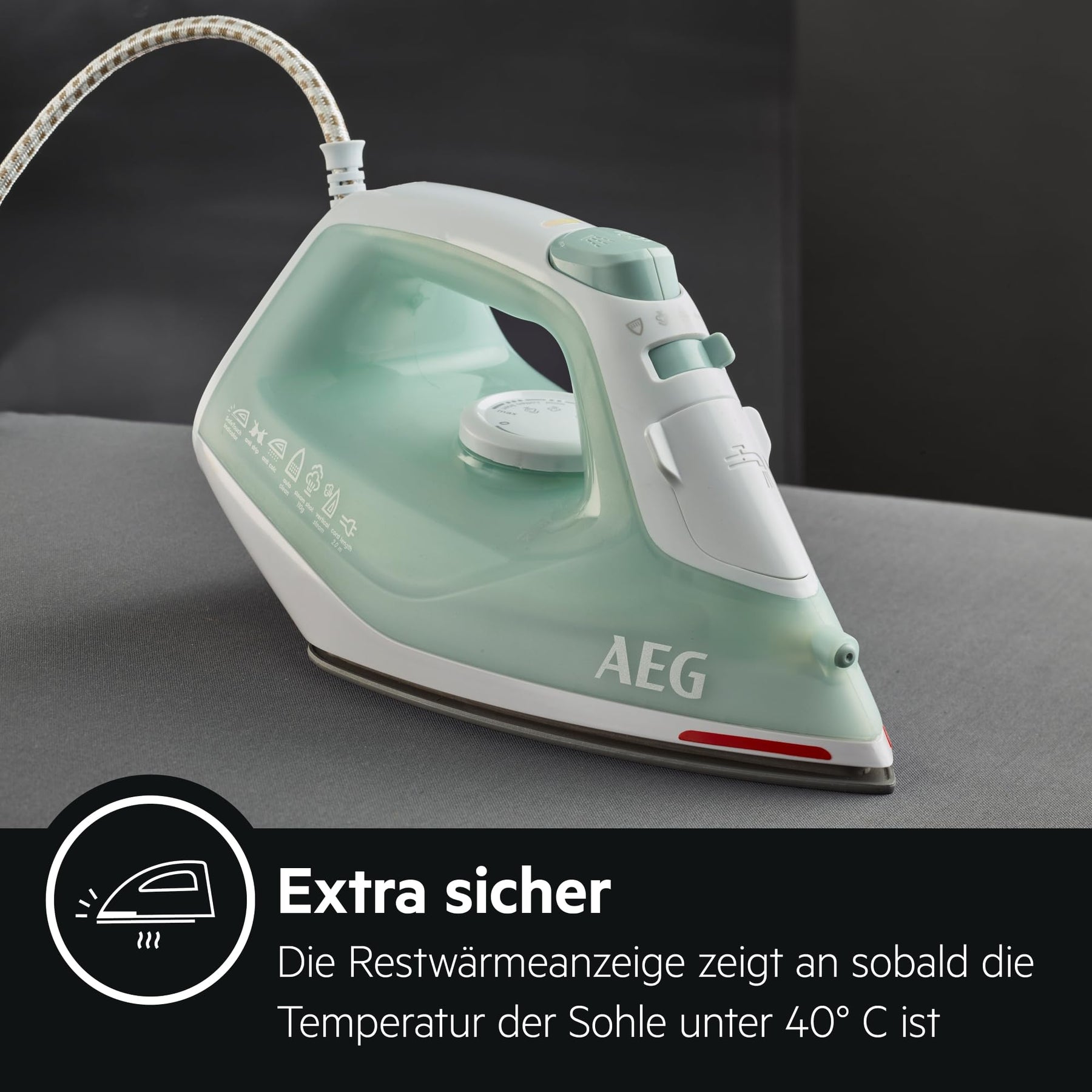 - ThermoSafe Restwärmeanzeige von rot zu schwarz (unter 40°C)