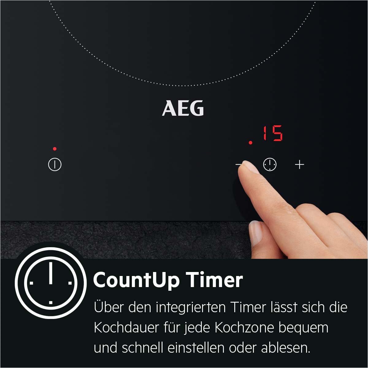 le. Die integrierte Kindersichererung verhindert, dass Kinder oder Haustiere das Kochfeld versehentlich einschalten. Produktinformationen Autark-Kochfeld mit obenliegenden Bedienelementen Elektronische Anzeigen für alle Kochzonen Schnellaufglühende, strahlungsbeheizte Kochzonen Stop- und Go-Funktion OptiFit Frame: Edelstahlrahmen Ansteuerung über Touch Control Berührungssensor Kurzzeitwecker Restwärmeanzeige Eingabebestätigung durch Signalton Kindersicherung Verriegelungsfunktion Elektronische Automatikkochstellen Kurzzeitwecker Leistungsabhängige Abschaltautomatik OptiFix: Einfaches Installationskonzept Glasfarbe: Schwarz Rahmenfarbe: Edelstahl / silber Technische Daten Art des Kochfeldes: Strahlenheizkörper Einbau: aufliegend Einbauhöhe (mm): 38,0 Gerätebreite (cm): 57,6 Gerätetiefe (cm): 51,6 Ausschnittmaß Breite (cm): 56,0 Ausschnittmaß Tiefe (cm): 49,0 Spannung (Volt): 220 - 240 Anschlusswert (Watt): 700 Anschluss-Spannung (Volt): 230 Kabellänge (m): 1,5 Bruttogewicht (kg): 8,6 Nettogewicht (kg): 7,71 Schutzboden: PBOX-6IR/944 189 313 AEG