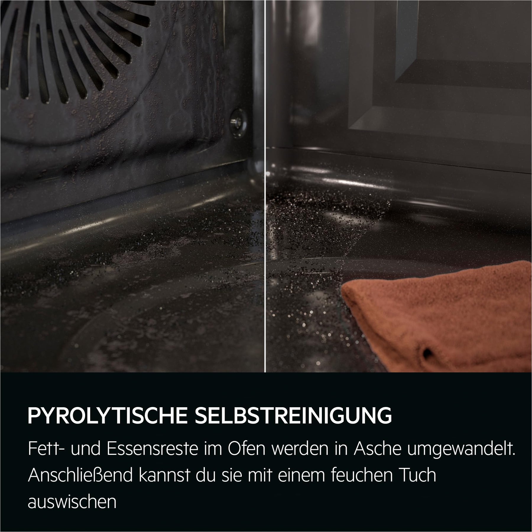 - PYROLYTISCHE SELBSTREINIGUNG - Fett- und Essensreste im Ofen werden in Asche umgewandelt. Anschließend kannst du sie mit einem feuchen Tuch auswischen
