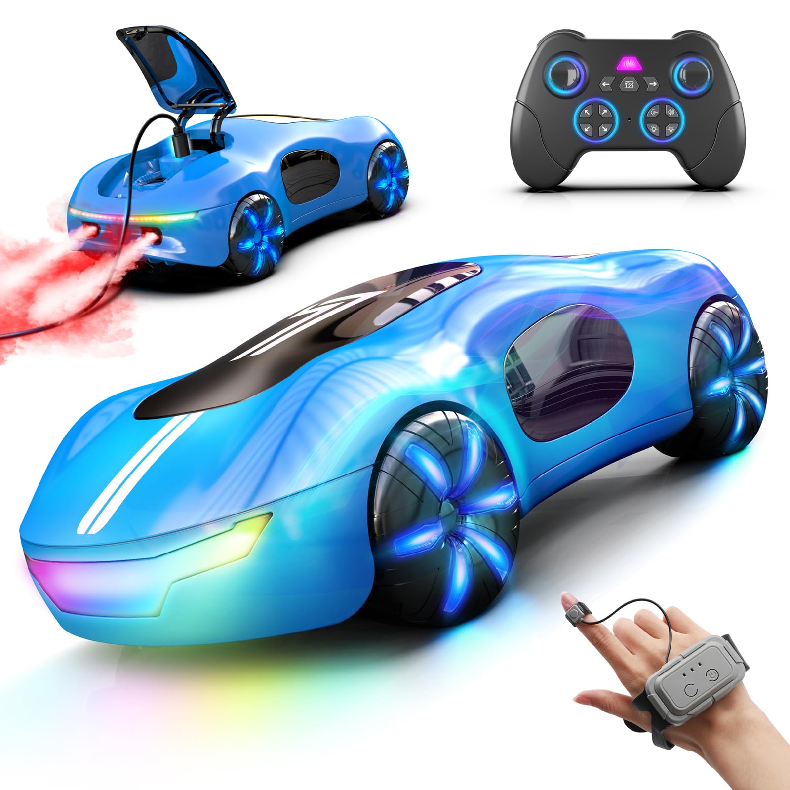 - Zwei Steuerungsmodi:AEROQUEST Ferngesteuertes Auto verfügt sowohl über eine standardmäßige 2,4-GHz-Fernbedienung als auch über einen hochmodernen Handgelenksensor.Der Handgelenksensor sorgt für ein aufregendes und futuristisches Erlebnis und ermöglicht es dem Auto,verschiedene Stunts basierend auf Handgesten auszuführen.Diese einzigartige Steuerungsmethode hilft, die Reaktionsgeschwindigkeit von Kindern zu verbessern und die Gehirnentwicklung zu fördern
