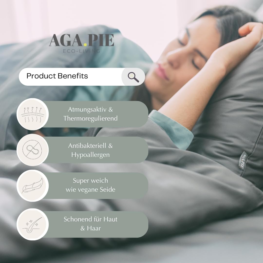 SEIDIG-WEICH & ANTI-STATISCH - Die AGA.PIE Bettwäsche fühlt sich wie „vegane Seide“ an – nur noch weicher. Besonders sanft zur empfindlichen Haut und schonend zu deinem Haar, verhindert sie zudem statische Aufladung.
