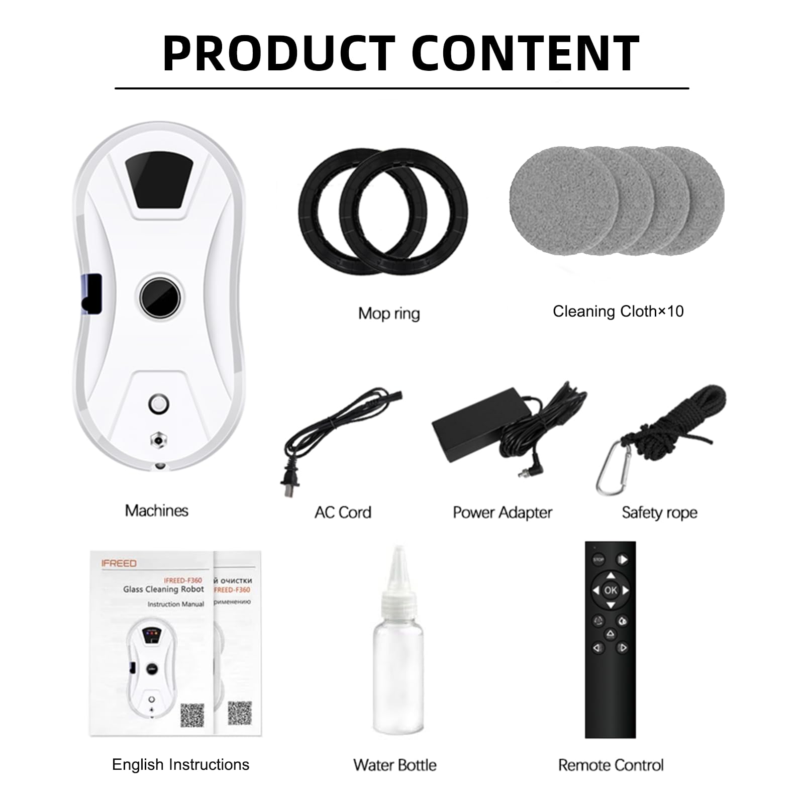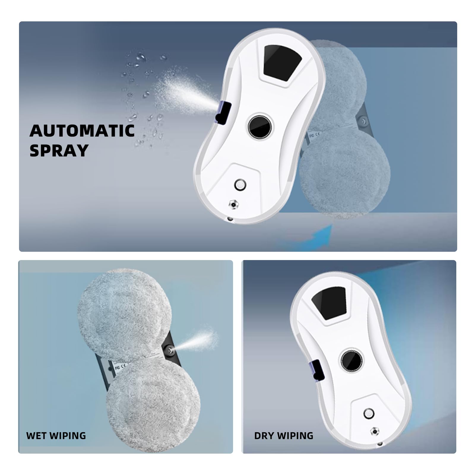 - 【Automatisches Wassersprühsystem】Der neue Fensterputzroboter verfügt über ein automatisches Ultraschall-Wassersprühsystem mit einem 35-ml-Wassertank, mit dem sich hartnäckige Flecken leichter entfernen lassen; Sie können über die Tasten der Fernbedienung zwischen automatischem oder manuellem Wassersprühen wählen, um die Fenster perfekt zu reinigen Gründlicher; Hinweis: Aufgrund des runden Designs des Produkts müssen die Ecken manuell abgewischt werden.