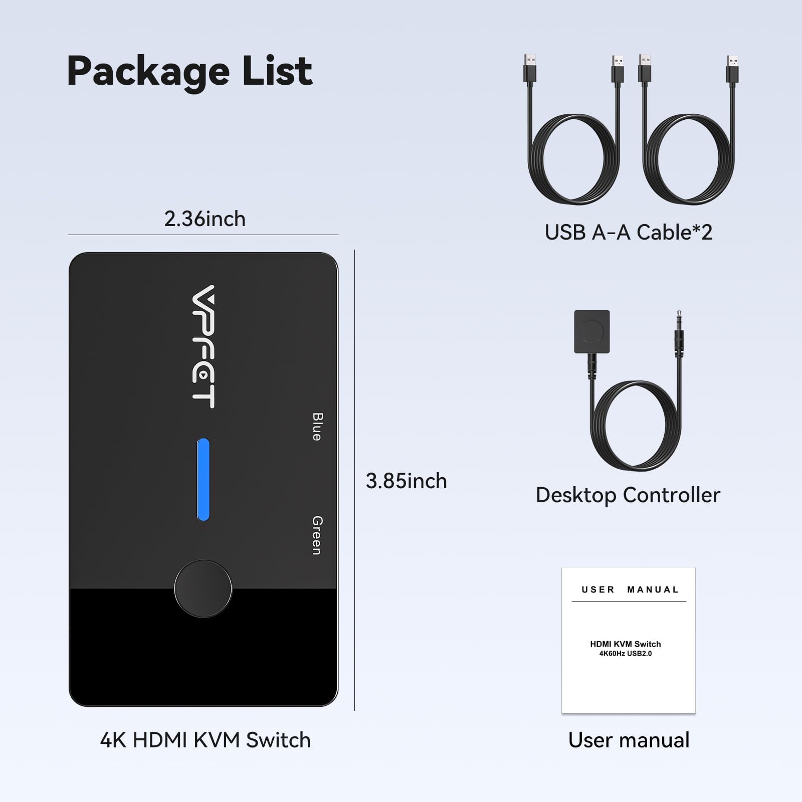 - Desktop-Fernbedienung und Tastensteuerung: Der HDMI KVM switch verfügt über zwei Umschaltmodi. 1) Sie können direkt durch Klicken auf die Taste am KVM-Switch umschalten. 2) Sie können den KVM-Switch verstecken und den Desktop-Controller verwenden, um zwischen den beiden Computern zu wechseln, was Ihren Desktop sauberer macht, viel Platz spart und die Nutzung bequemer gestaltet. Hinweis: Dieser KVM schalter unterstützt kein Hotkey-Umschalten